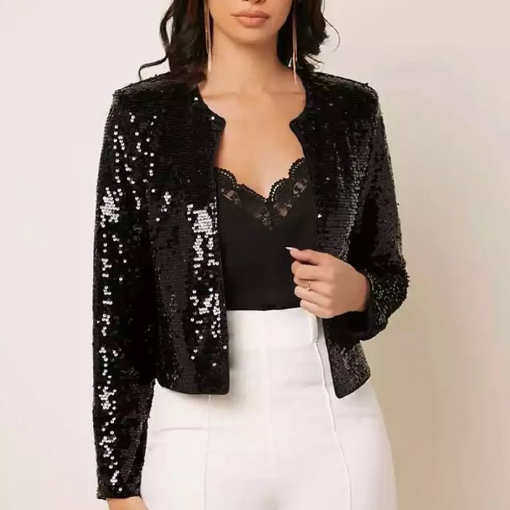 スパンコール ボレロ ジャケット カーディガン 長袖 裏地つき ストレッチ M L XL 2XLサイズ メール便 送料無料