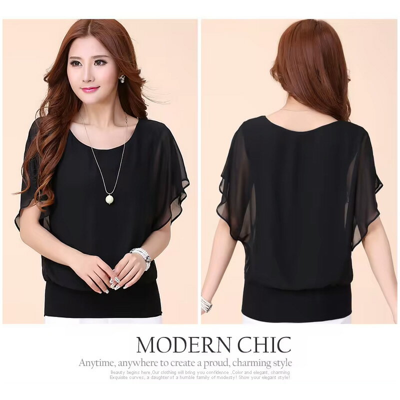 半袖 トップス プルオーバー シフォン 大きいサイズ ゆったりサイズ ストレッチ ホワイト レッド ブラック M L XL 2XL メール便 送料無料