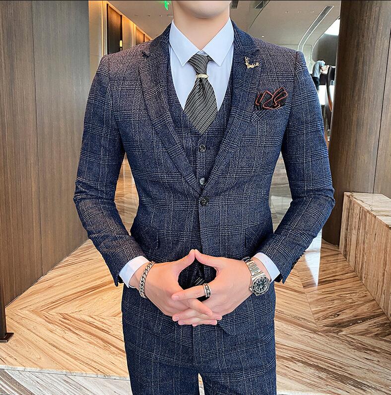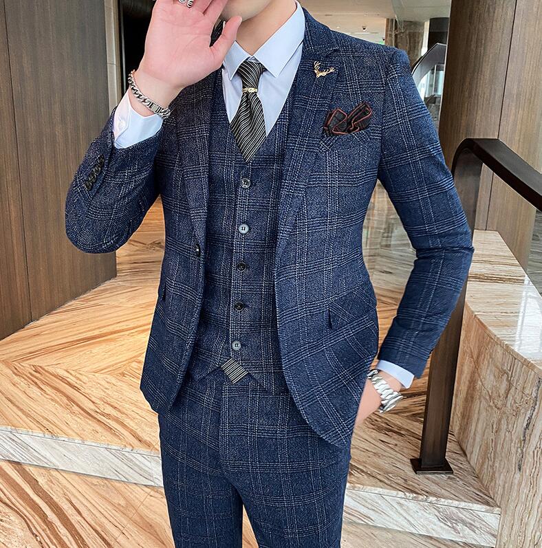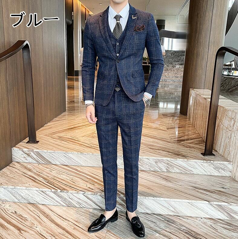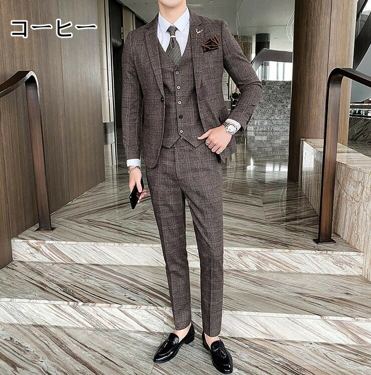 千鳥柄 スーツ メンズ ウォッシャブル 3ピーススーツ スリーピーススーツ フォーマルスーツ ビジネススーツ ウォッシャブル 長袖 ジャケット+パンツ+ベスト セットアップ パーティー スーツ 就職スーツ 卒業式 入学式 礼服 結婚式 おしゃれ
