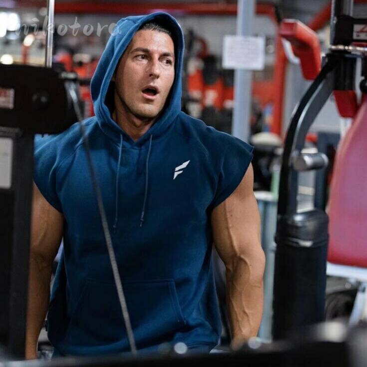 フード付き タンクトップ メンズ トレーニングウェア ノースリーブ 袖なし パーカー 筋トレ ウェア ジム フィットネス トップス ゆったり シンプル ファッション ジム スポーツウェア 通気性 運動着 男性用 20代30代40代 オールシーズン