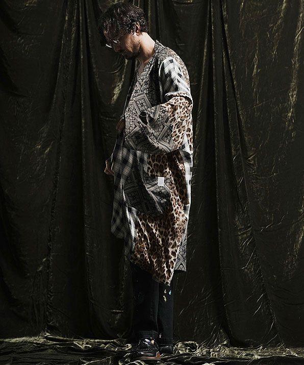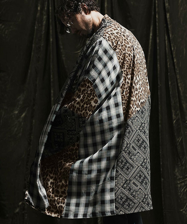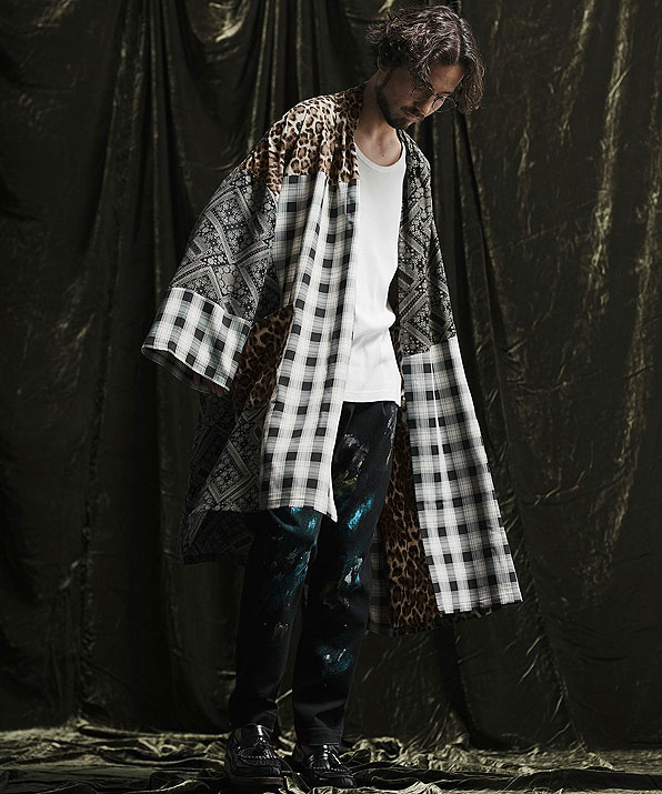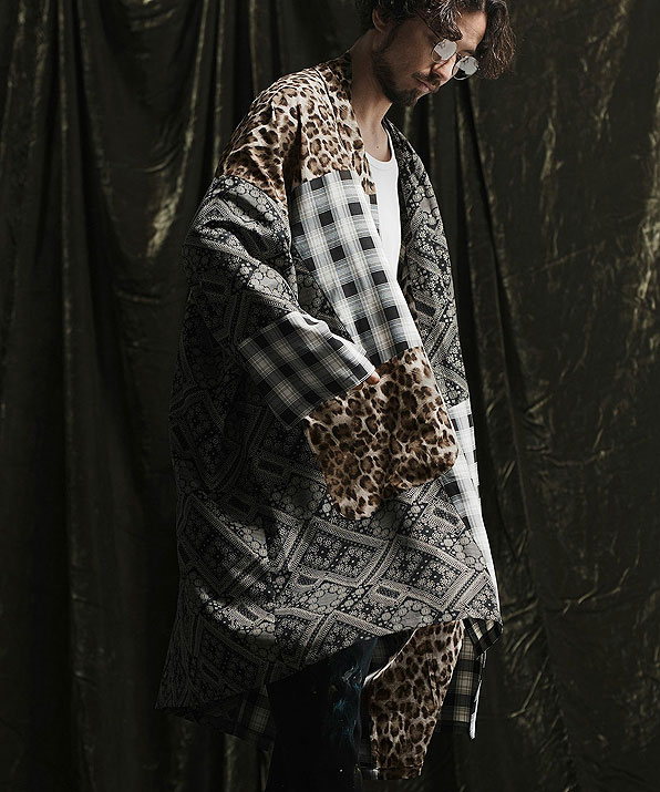 2024 春夏 先行予約 4月下旬~5月上旬入荷予定 アンゲネーム ANGENEHM Patterned switching KIMONO Like Gown ag02-031sce メンズ ガウン 送料無料 キャンセル不可