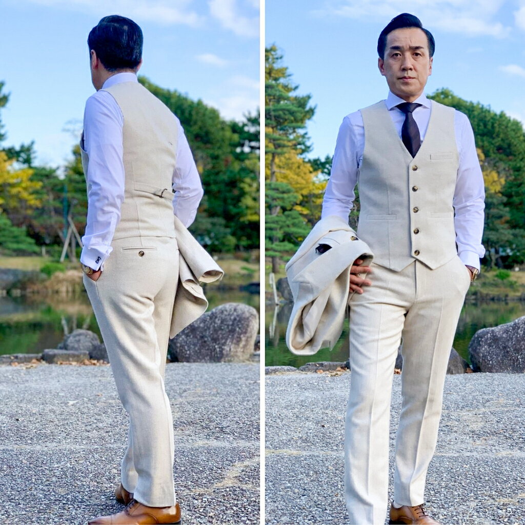 ベージュシングルジャケットスリーピーススーツ