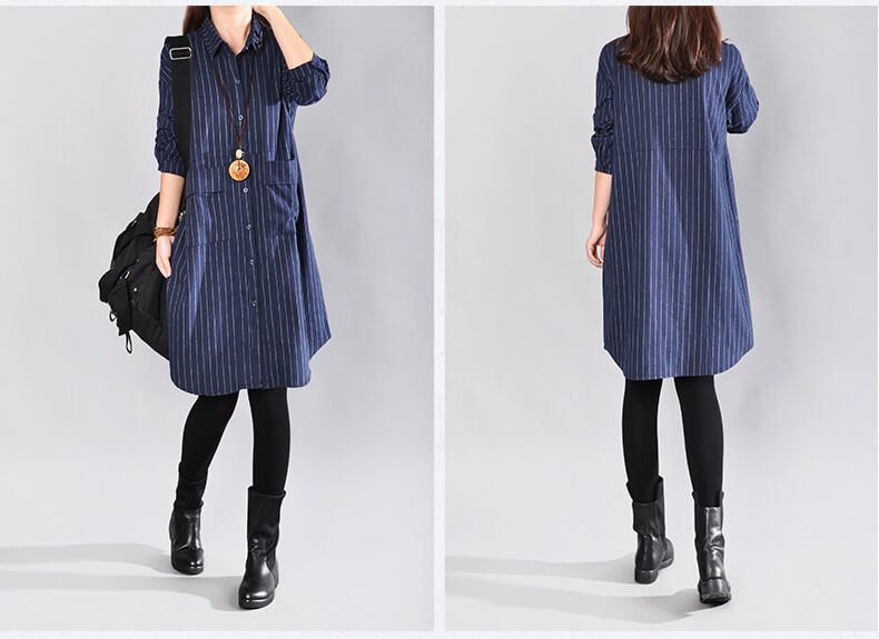 【送料無料】ワンピース レディース シャツワンピース リネンワンピース 春 春夏 ロング チュニック コットン リネン 綿麻 麻 ストライプ シャツ きれいめ Aライン 長袖 大きいサイズ 森ガール 体型カバー ゆったり 夏 秋 秋冬 カジュアル ナチュラル