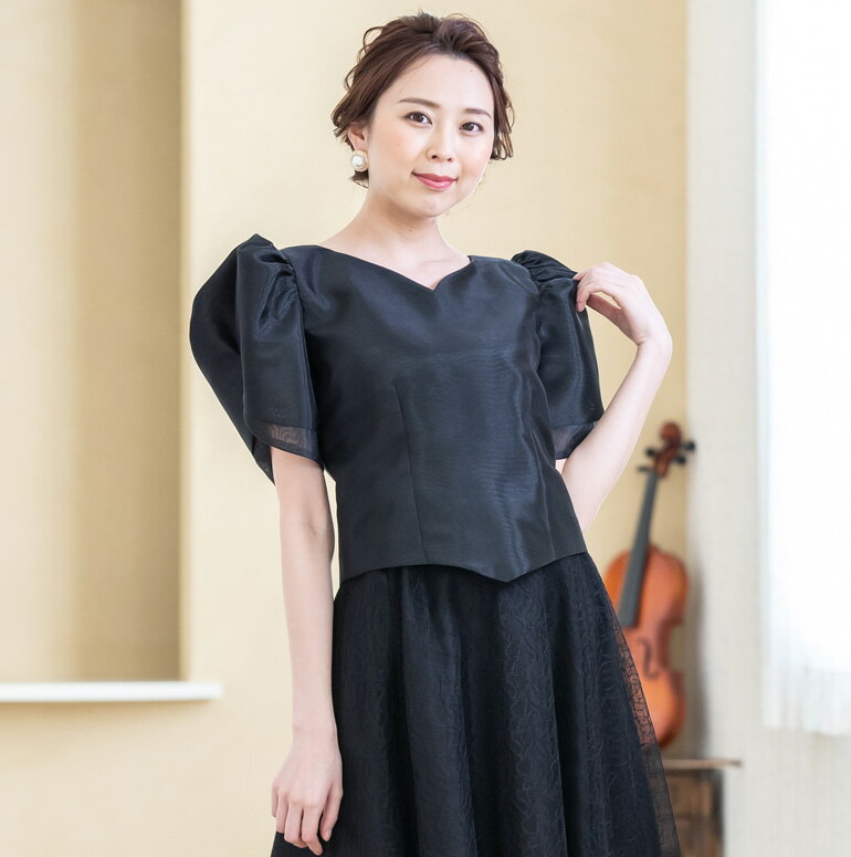 チューリップ袖のブラウス フォーマル コーラス 衣装 黒 白 シルバー 演奏会 オーケストラ 合唱 衣装 発表会 ミセス 体型カバー トップス ステージ衣装 カラオケ コーラス 大きいサイズ 袖 結婚式 上品 レディース ピアノ (bl552)
