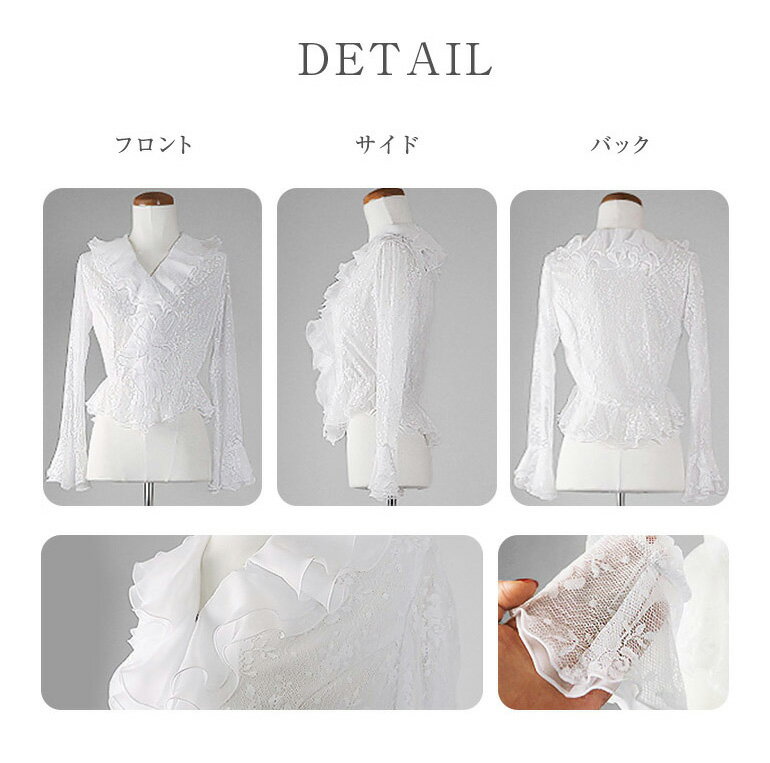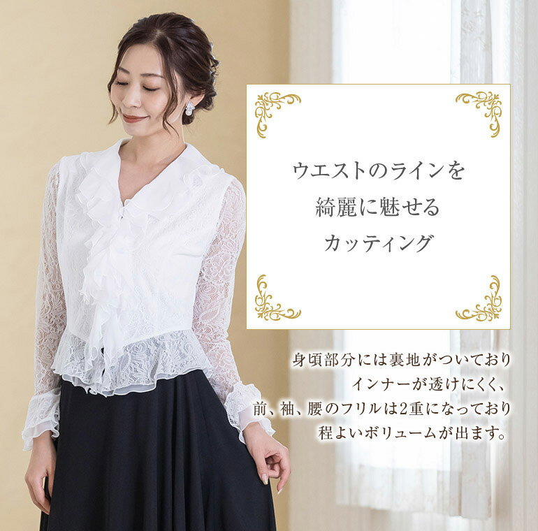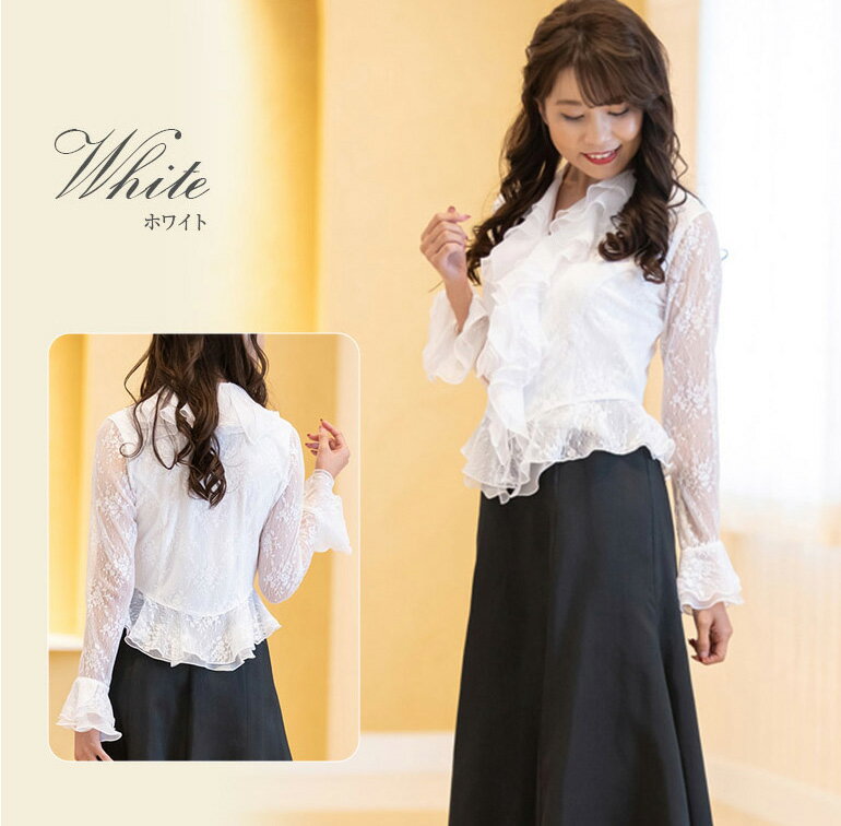 演奏会 コーラス 衣装 白 黒 ストレッチ レース フリル ブラウス 合唱 第九 オーケストラ ピアノ 発表会 大人 フォーマル ミセス ダンス衣装 演奏会用ブラウス 舞台衣装 ステージ衣装 長袖 シフォン 声楽 大きいサイズ 着痩せ 体型カバー (bl651)