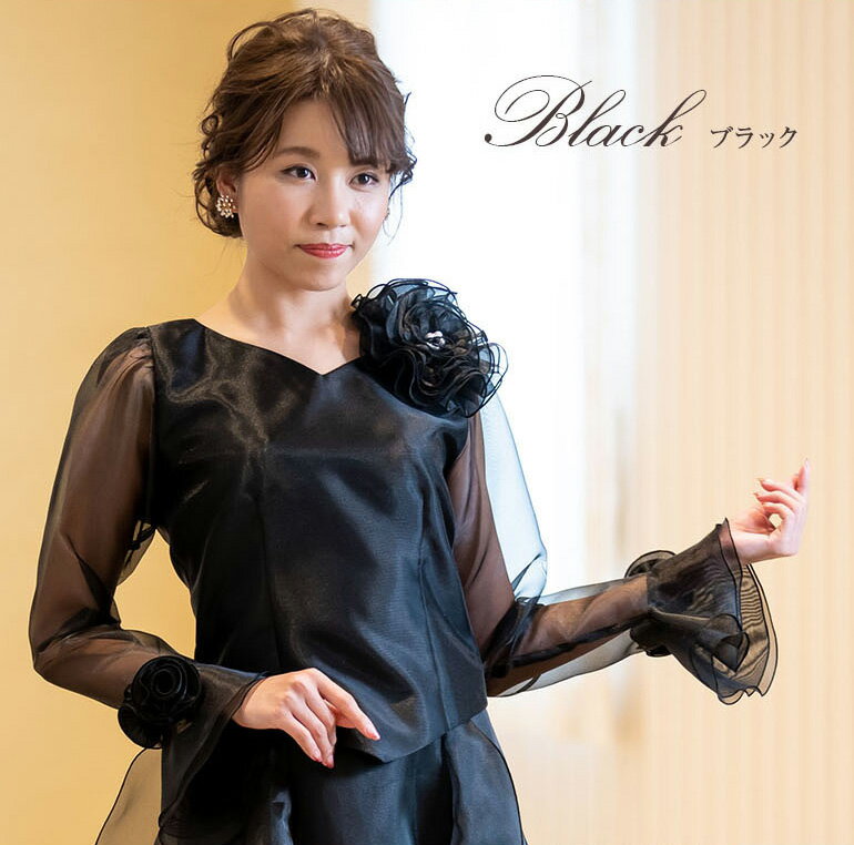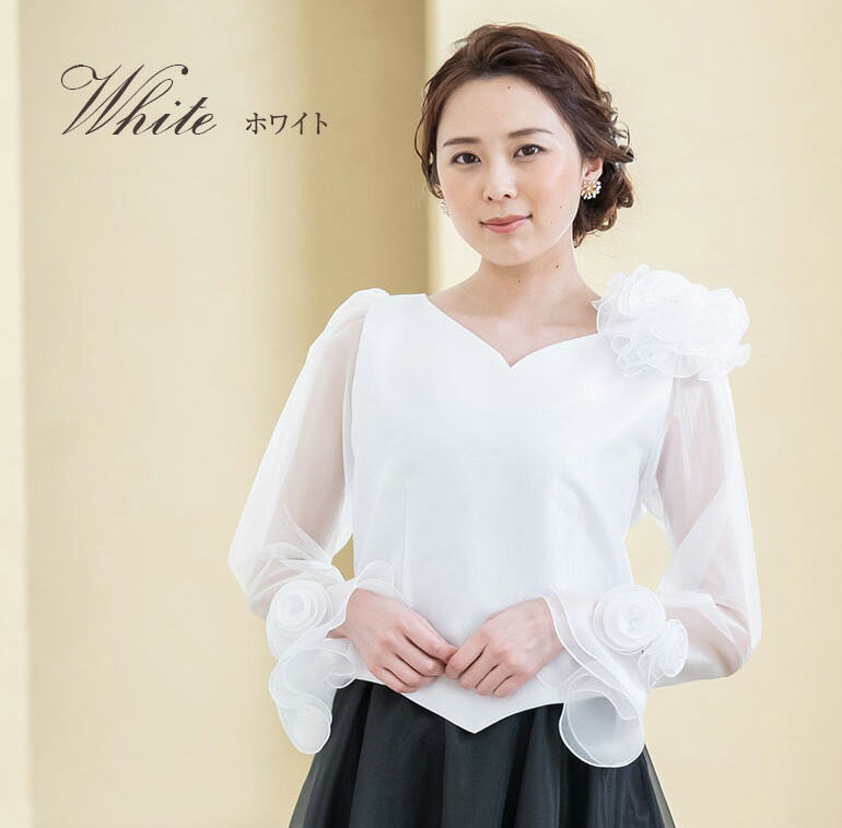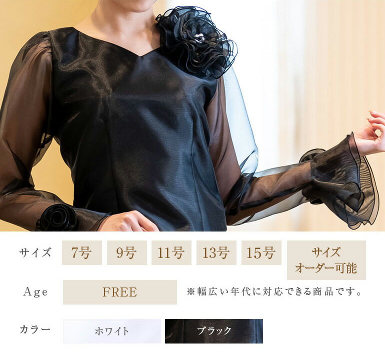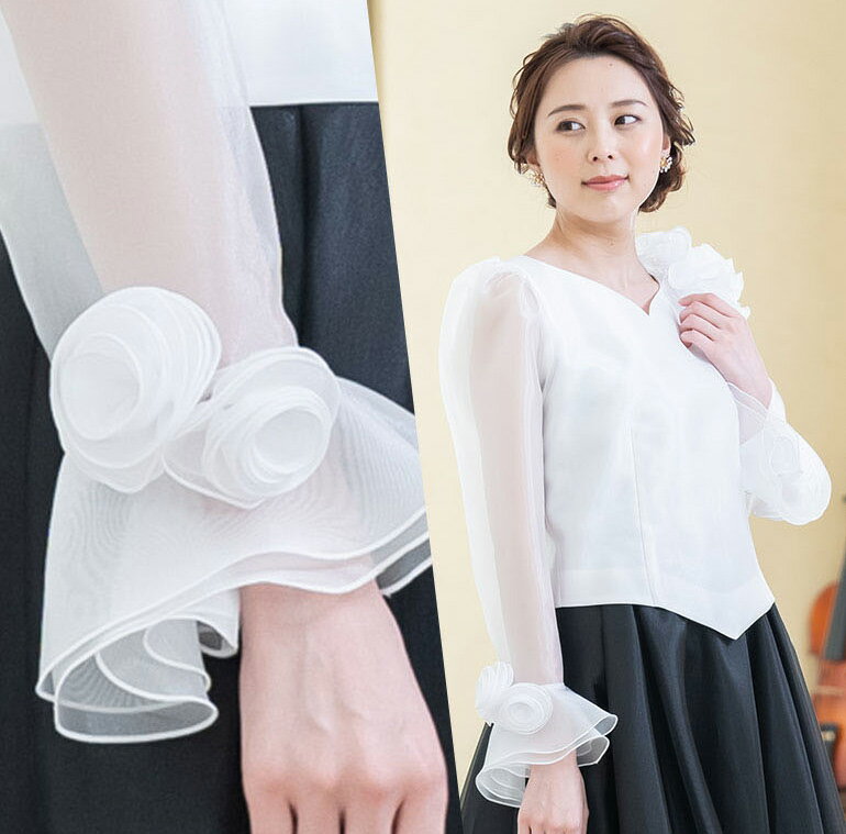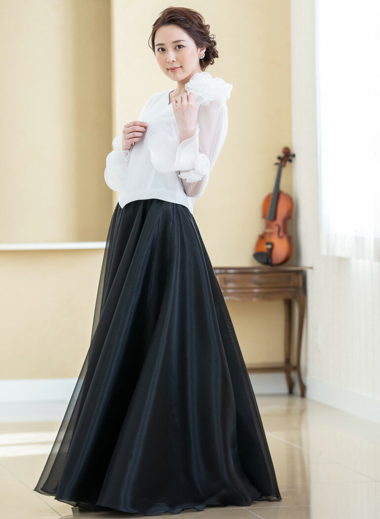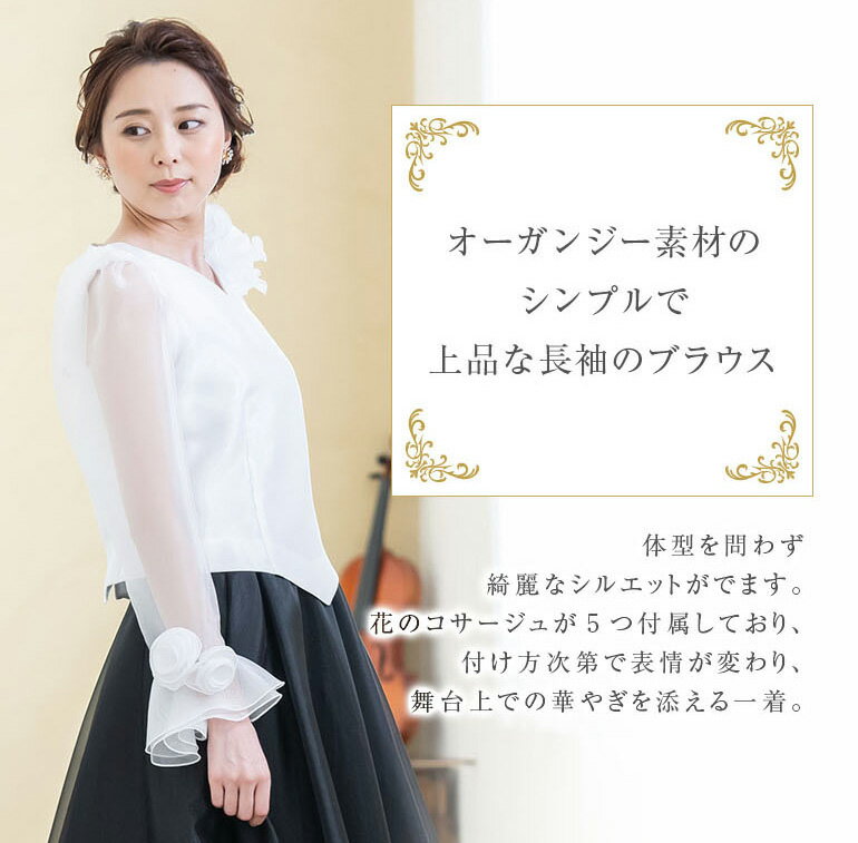【日本製】 コーラス 衣装 演奏会 白 黒 オーガンジー 10分袖 ブラウス フォーマル レディース 発表会 フリル 大きいサイズ ロング ロングスカート セレモニー パーティー 長袖 ドレス シフォン トップス (bl669)演奏会用ブラウス