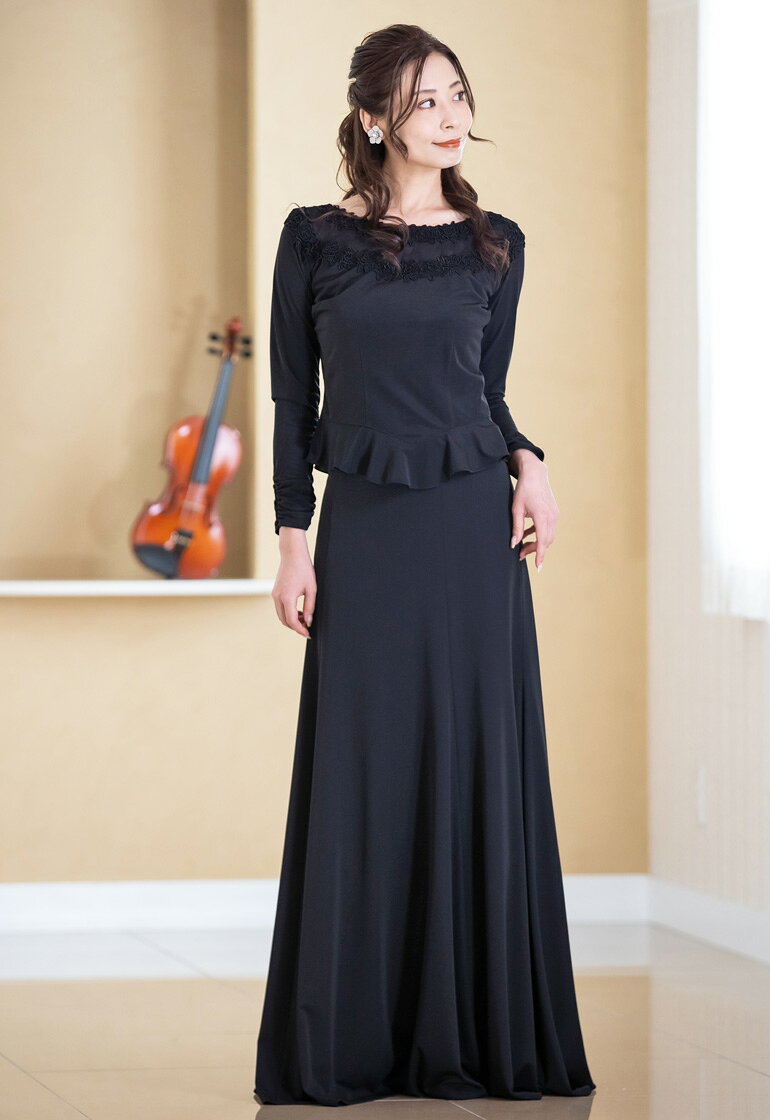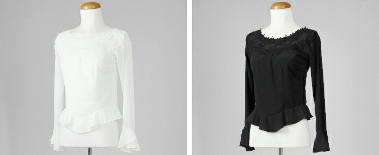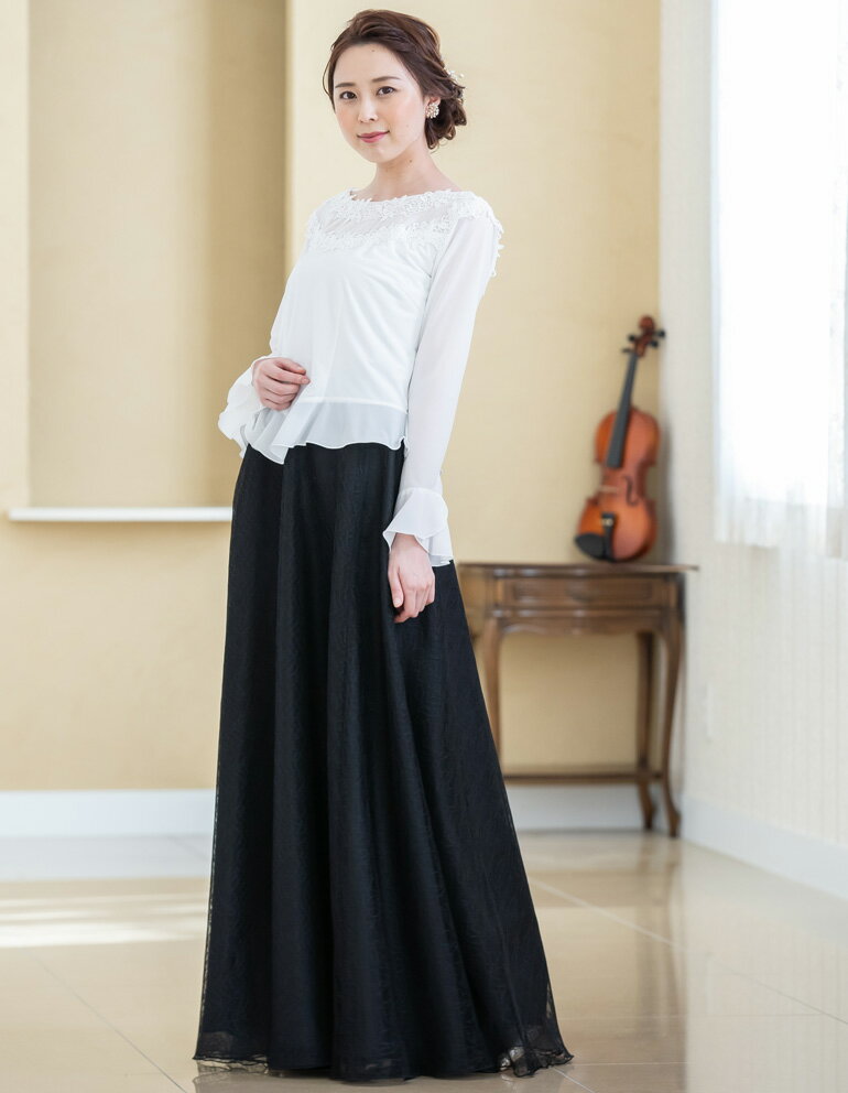 コーラス 衣装 ブラウス 2段レースのストレッチ ブラウス 演奏会 オーケストラ 合唱 フォーマル 結婚式 白 黒 ステージ衣装 発表会 フリル 大きいサイズ セレモニー パーティー ミセス 長袖 イベント 可愛い トップス カットソー (bl729)