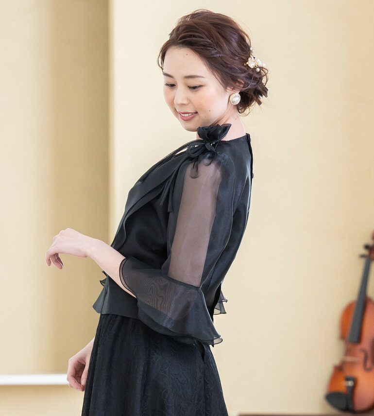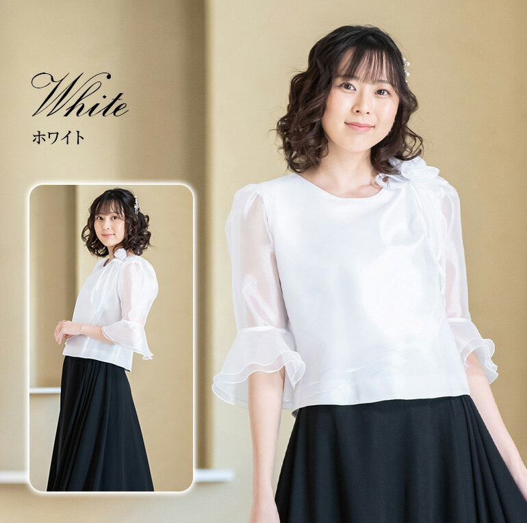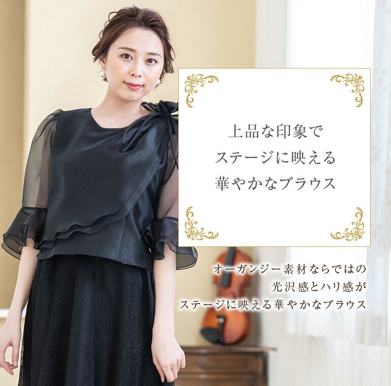 コーラス 衣装 演奏会 白 黒 ドレープ オーガンジー 5分袖 ブラウス 合唱 カラオケ衣装 ステージ 衣装 ピアノ 発表会 大人 演奏会用ブラウス 舞台衣装 フォーマル 大きいサイズ カットソー 日本製(bl760)