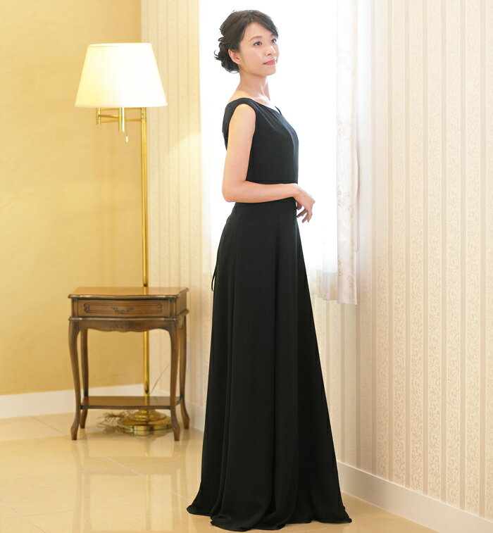 即日発送 ロングドレス 演奏会 黒 演奏会用ドレス 日本製 ジョーゼット ブラック ドレス 演奏会用ロングドレス 発表会 ワンピース 大人 フォーマル 大きいサイズ あす楽 フォーマルドレス 着痩せ 体型カバー マザーズドレス(asuraku_op3555)