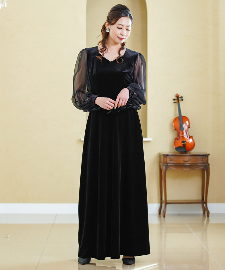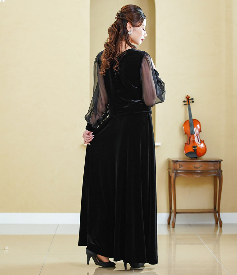 【日本製】演奏会 衣装 フォーマル ベロア ロングスカート 黒 コーラス 日本製 オーケストラ 合唱 結婚式 第九 発表会 演奏会用スカート パーティー ステージ衣装 コーラススカート 大きいサイズ 親族sk3096