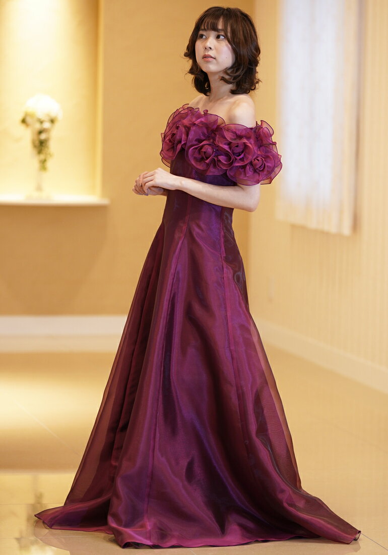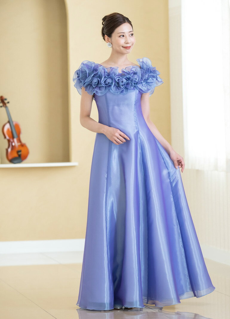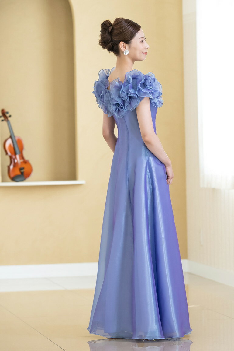 ステージ 衣装 フリル コサージュ オフショルダー ロングドレス 日本製 袖付き 演奏会 カラオケ衣装 袖あり 演奏会用ドレス ピアノ 発表会 大人 大きいサイズ オーダー ロング 声楽 (op3639)