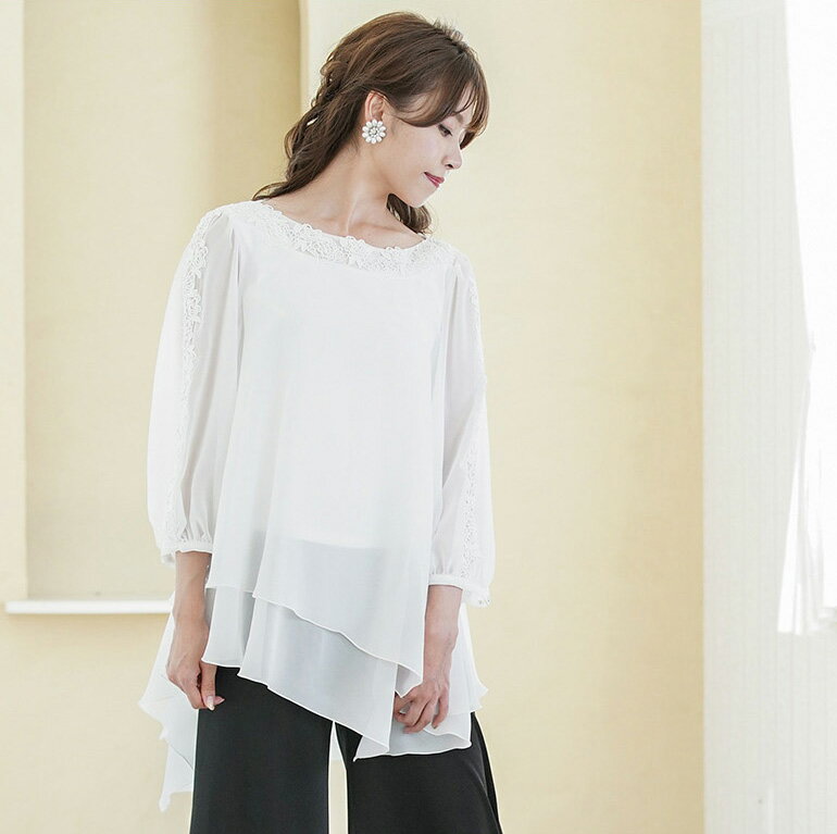 体型カバー フォーマルブラウス 演奏会 白 黒 シフォンジョーゼット ロング アンシンメトリー ブラウス 着痩せ コーラス 衣装 合唱 ピアノ 発表会 大人 オーケストラ 第九 大きいサイズ レディース ステージ 衣装 舞台衣装 bl816