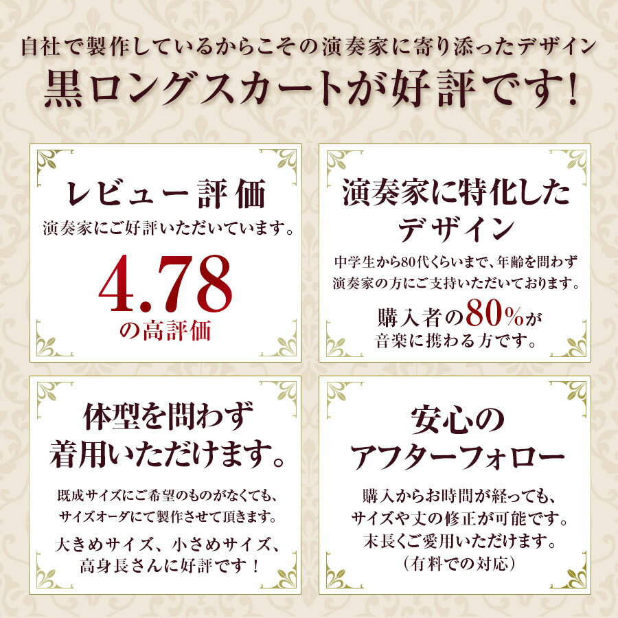 フォーマル 黒 ロングスカート シャンタン スカート(sk3074)日本製 コーラス 演奏会 オーケストラ 合唱に最適!ステージ衣装 発表会♪演奏会用スカート フォーマル 大きいサイズ 20代 30代 40代 50代 上品 大人 結婚式