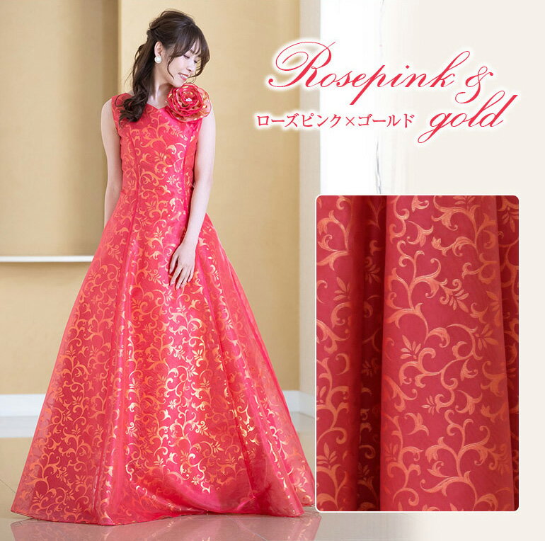 ロングドレス 演奏会 演奏会用ドレス ゴールド 模様 ノースリーブ ドレス ドレス コンクール 発表会 ピアノ ステージドレス 大きいサイズ カラードレス 大人 大学生 高校生 中学生 レッド 二次会 パーティードレス op3657