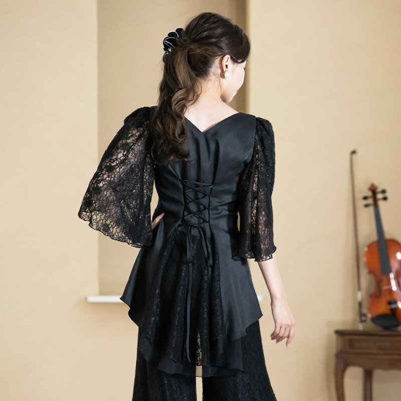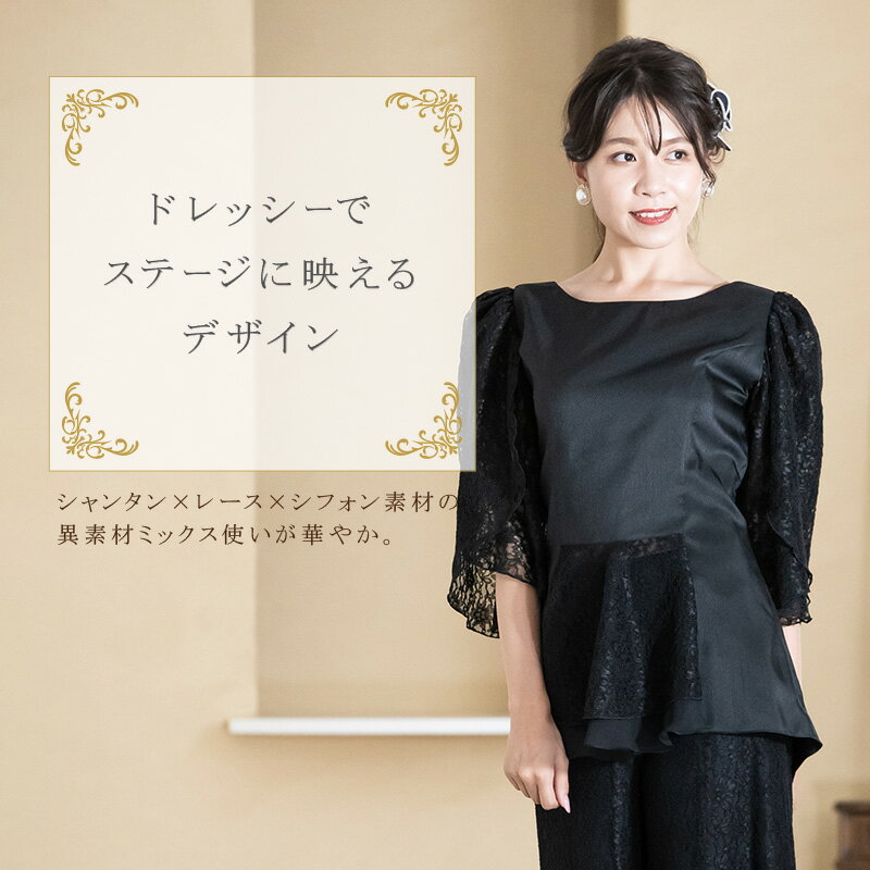 ブラウス 演奏会 白 黒 フォーマル レースのケープ風 フィッシュテール ブラウス ブラック コーラス 衣装 合唱 ピアノ 発表会 大人 オーケストラ 第九 大きいサイズ フリル レディース ステージ 衣装 舞台衣装 演奏会用ブラウス 着痩せ bl829