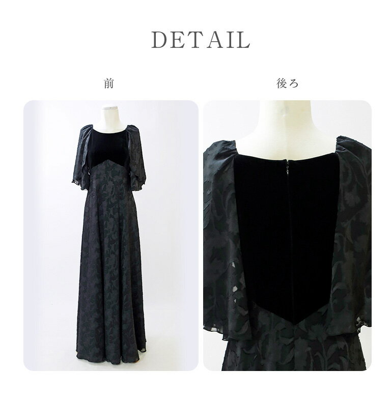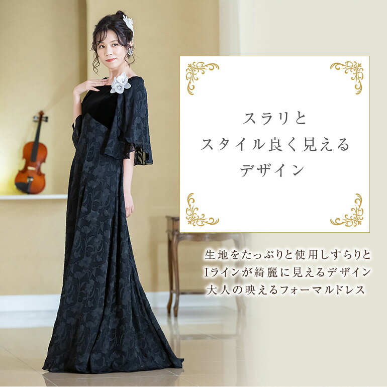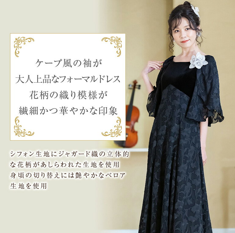 ロングドレス 演奏会 演奏会用ドレス 花柄&ベロア ケープ風 ドレス ロング 発表会 ピアノ 大人 フォーマル 大きいサイズ 結婚式 母親 着痩せ 親族 マザーズドレス 体型カバー ステージ 衣装 マザードレス オーケストラ 30代 40代 50代 60代(op3673)日本製