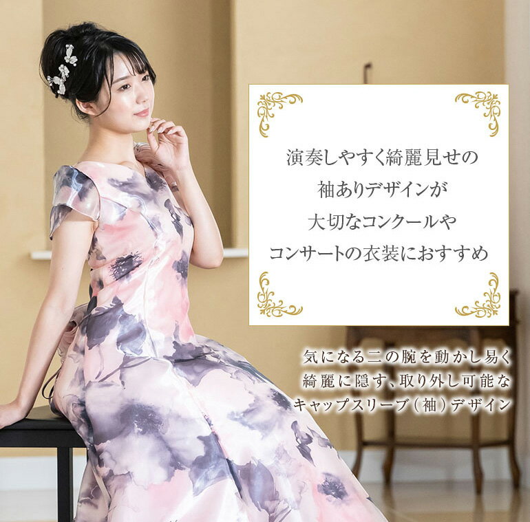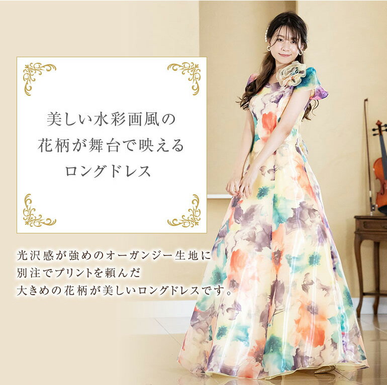 ロングドレス 演奏会 演奏会用ドレス 水彩画風花柄プリント 2way ドレス ロング 発表会 ピアノ 大人 中学生 高校生 フォーマル 大きいサイズ 結婚式 母親 フォーマル ステージ 衣装 コーラス オーケストラ 30代 40代 50代(op3670)日本製