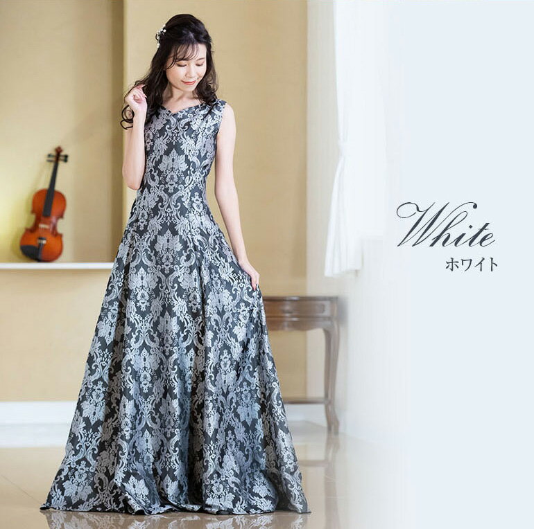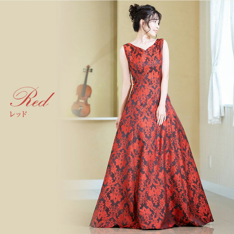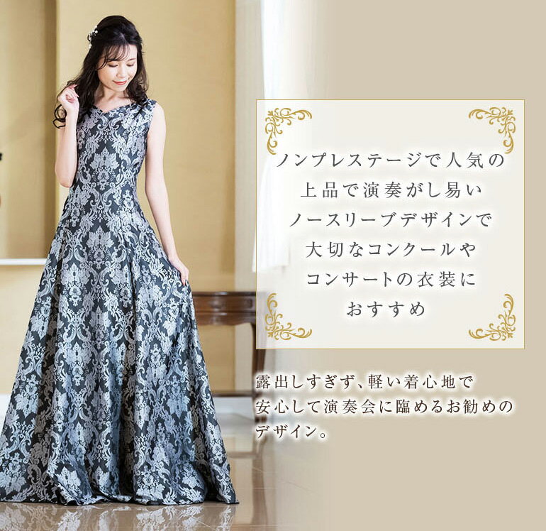 ロングドレス 演奏会 演奏会用ドレス ダマスク柄ジャガード ノースリーブ ドレス ロング 発表会 ピアノ 大人 中学生 高校生 フォーマル 大きいサイズ 結婚式 母親 フォーマル ステージ衣装 オーケストラ 30代 40代 50代(op3676)日本製