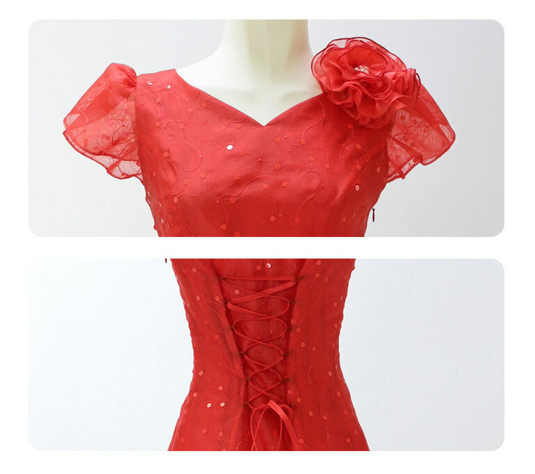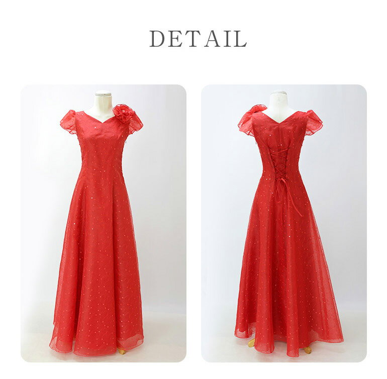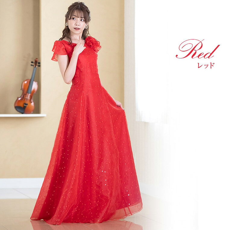 【限定6着】演奏会用ドレス 刺繍×スパンコール オーガンジー 2way ドレス ロングドレス 演奏会 演奏会ドレス ステージドレス カラードレス パーティードレス レッド (op3672)日本製