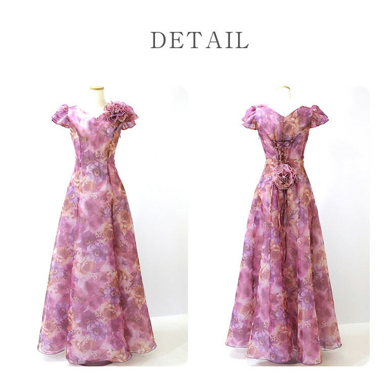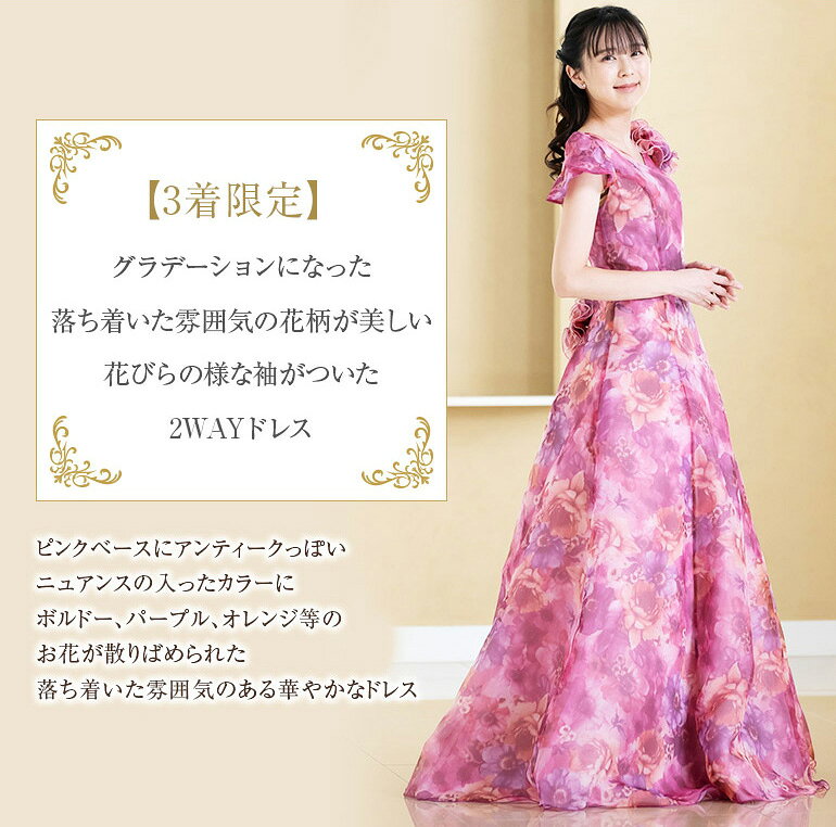 【限定3着】演奏会用ドレス アンティークローズ オーガンジー 2way ドレス ロングドレス 演奏会 演奏会ドレス ステージドレス カラードレス パーティードレス ピンク (op3692-1)日本製