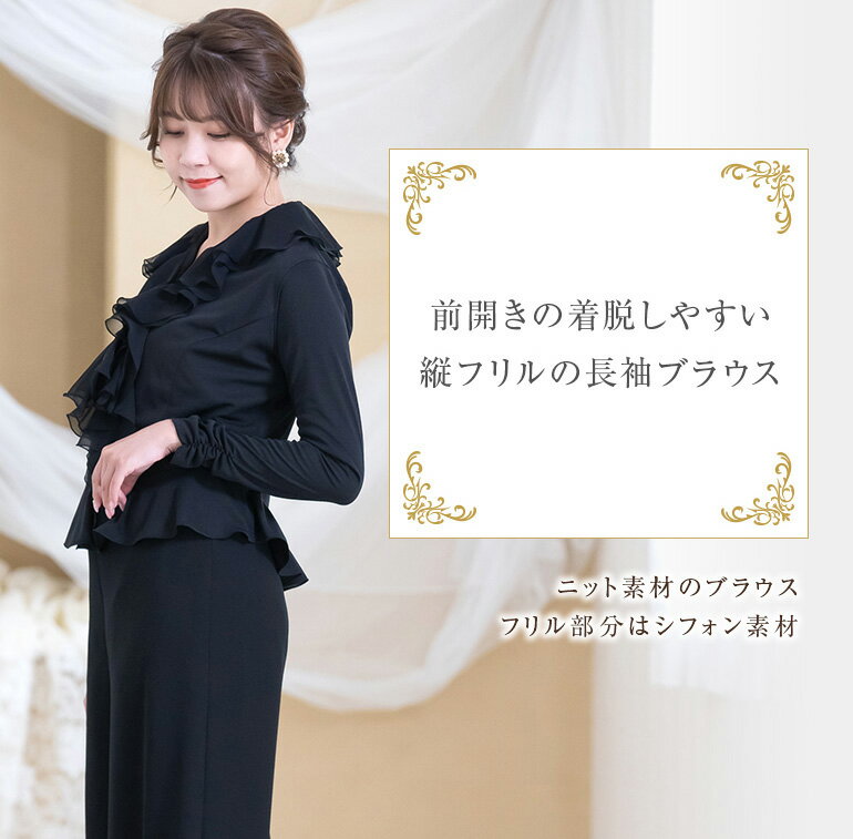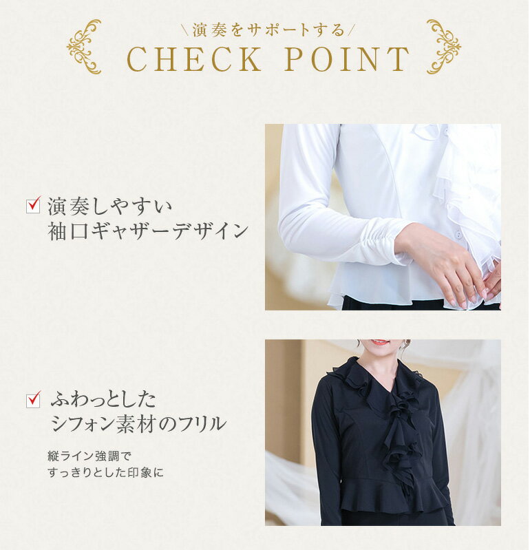 ブラウス 演奏会 白 黒 フォーマル 縦フリル 長袖 ブラウス コーラス 衣装 合唱 ピアノ 発表会 大人 トップス オーケストラ 第九 大きいサイズ 体型カバー レディース ステージ 着痩せ bl847