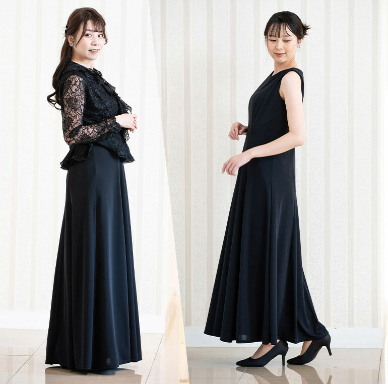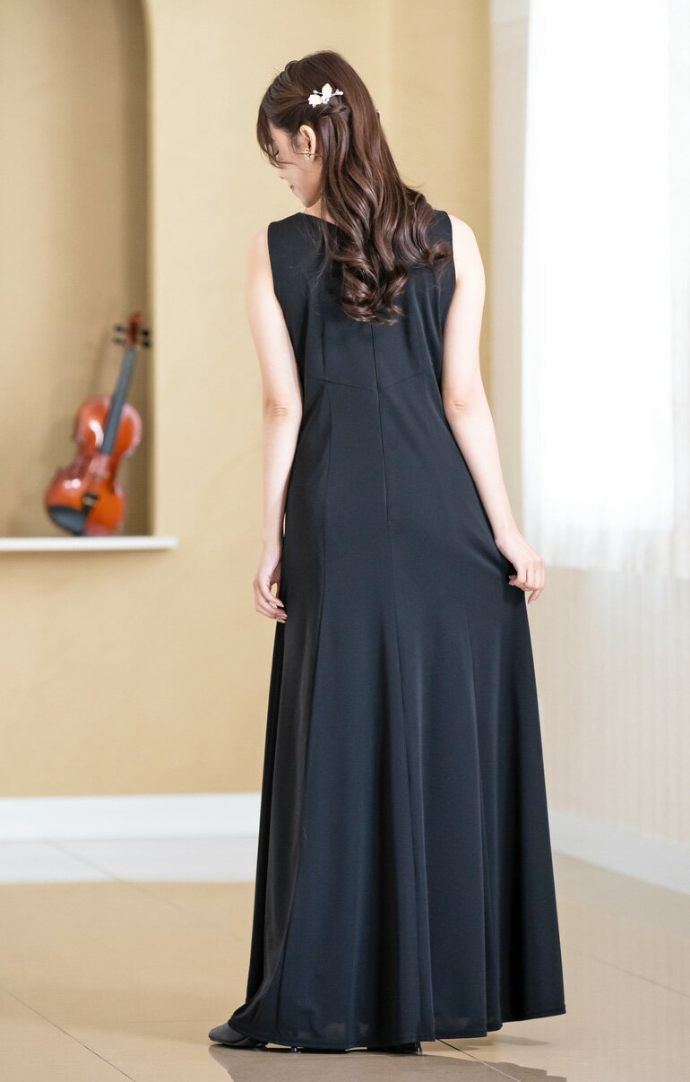 ロングドレス 黒 演奏会 演奏会用ドレス ピアノ 発表会 大人 ステージ衣装 大きいサイズ 着痩せ 日本製 パーティードレス ブラック コンサート オーケストラ op3728