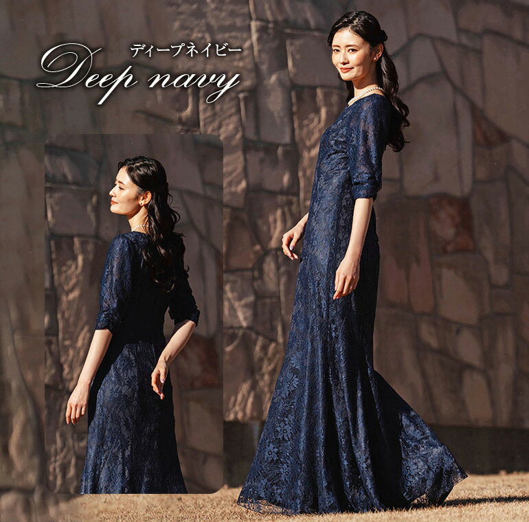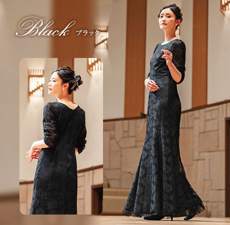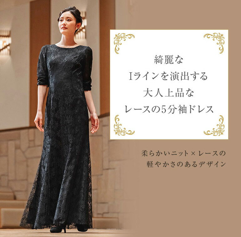 ロングドレス 母親 結婚式 花嫁 母 レース マーメイドライン 5分袖 ドレス マザーズドレス フォーマル 演奏会 ステージ衣装 黒 大きいサイズ ママドレス 正礼装 50代 40代 60代 低身長 祖母 着痩せ 体型カバー 正礼装 op3735
