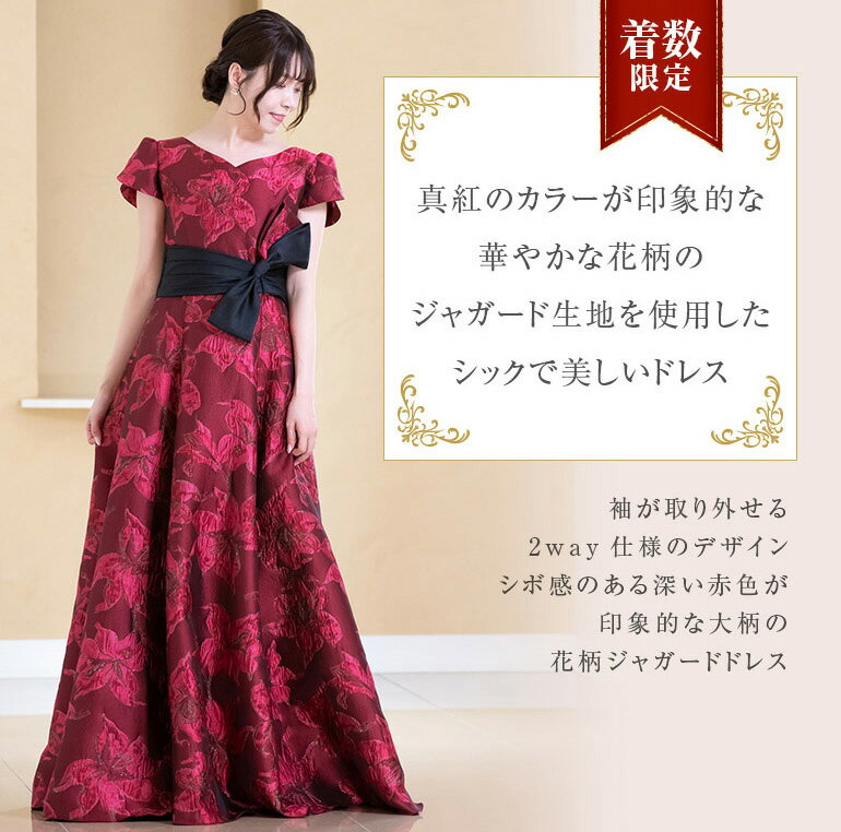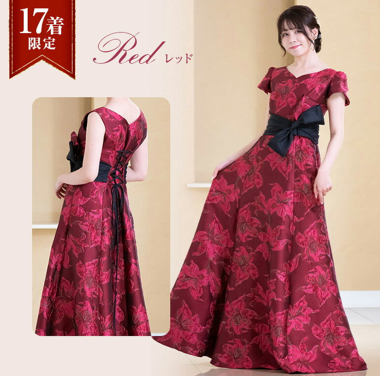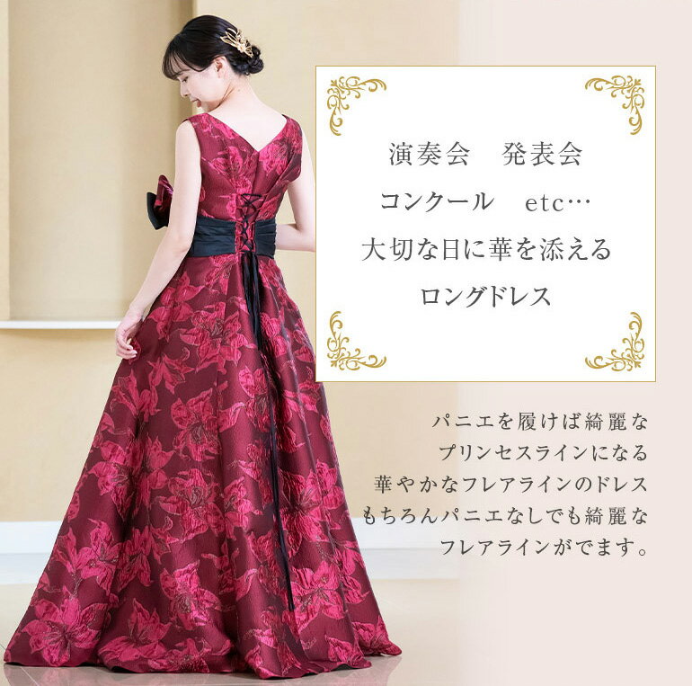 【17着限定】演奏会用ドレス 演奏会 ロングドレス ジャガード 2way ドレス コンクール 発表会 ピアノ ステージドレス 大きいサイズ カラードレス 大人 大学生 高校生 中学生 ピアノ発表会 レッド 二次会 花嫁 前撮り パーティードレス (op3739)