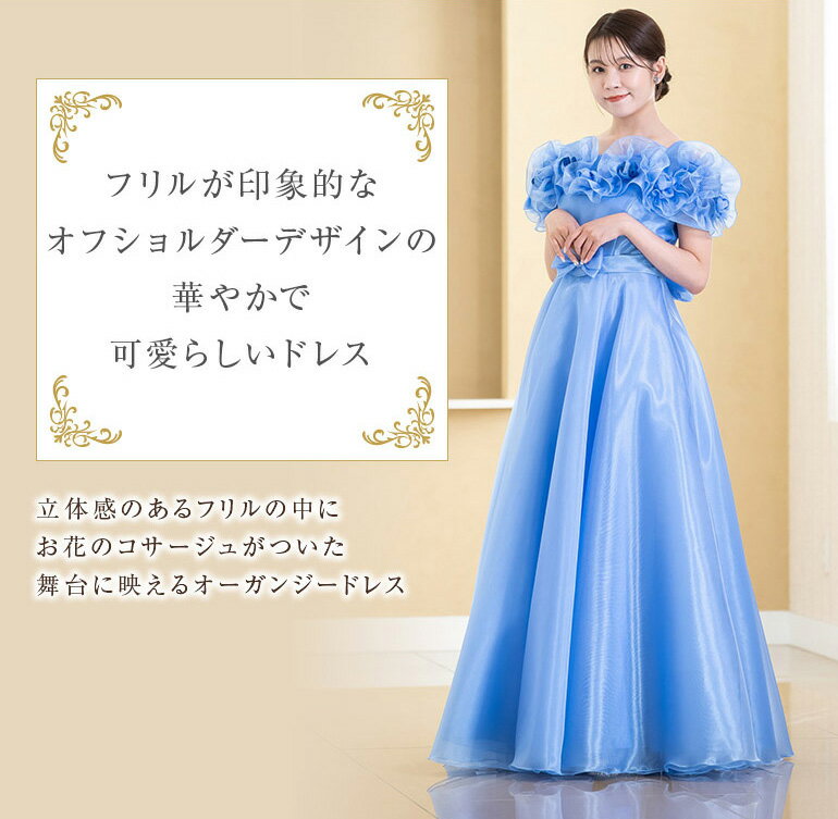 演奏会用ドレス ピアノ発表会 中学生 高校生 大人 オーガンジー オフショルダー フリル ドレス ピアノ 発表会 演奏会 ロングドレス ジュニア 160 cm 165 黒 コンクール ステージ衣装 カラードレス 声楽 大きいサイズ (op3746)