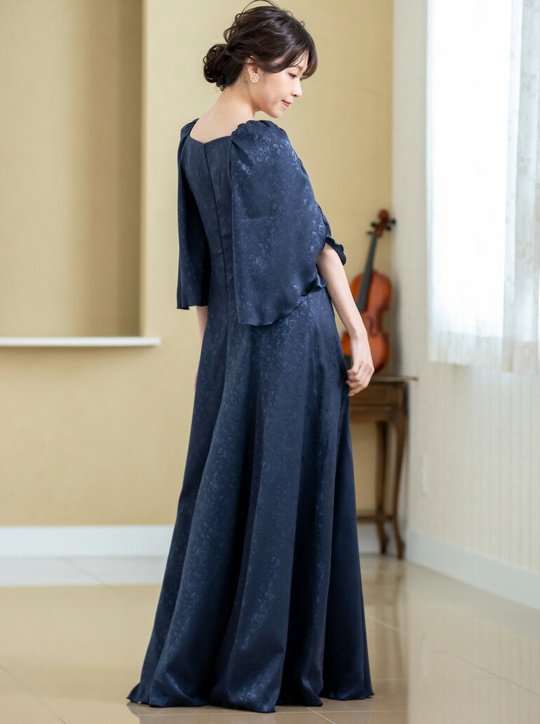 サンプルセール【安心の日本製】ロングドレス 母親 結婚式 ドレス 演奏会 フォーマル 花嫁 の 母 薔薇柄ストレッチジャガードの ケープ風 ドレス 着痩せ 体型カバー 発表会 マザーズドレス ミセスドレス 30代 40代 50代 60代 大人 ピアノ 発表会 op3643