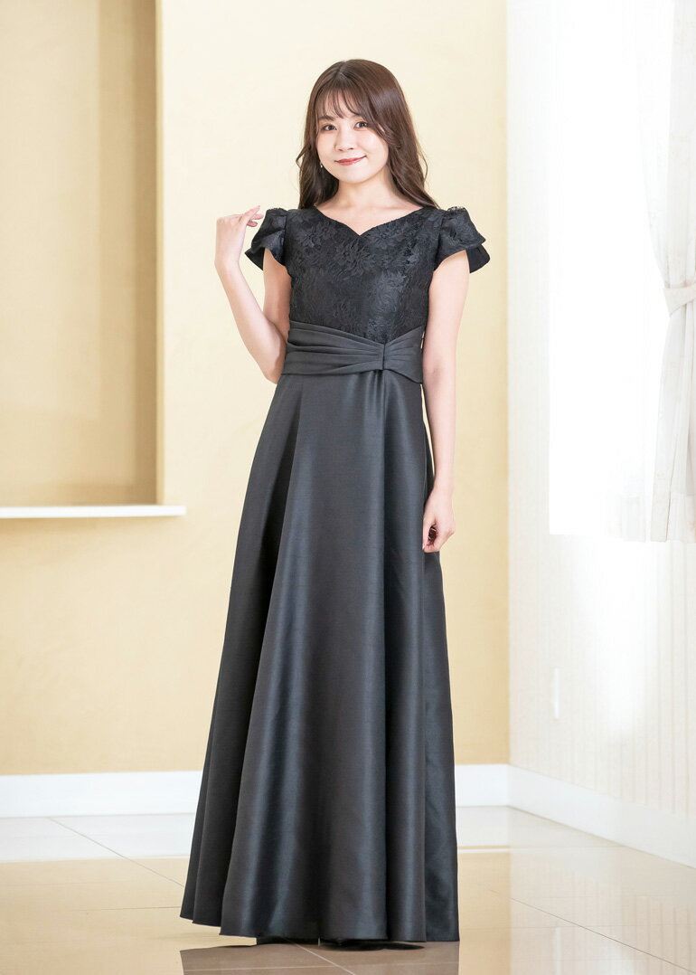 【イベント限定10%OFF】【安心の日本製】演奏会用ドレス ピアノ 発表会 大人 レース×シャンタン 2way ロングドレス フォーマルドレス 演奏会 体型カバー パーティードレス 太め 袖付き 袖あり大きいサイズ 小さいサイズ op3755