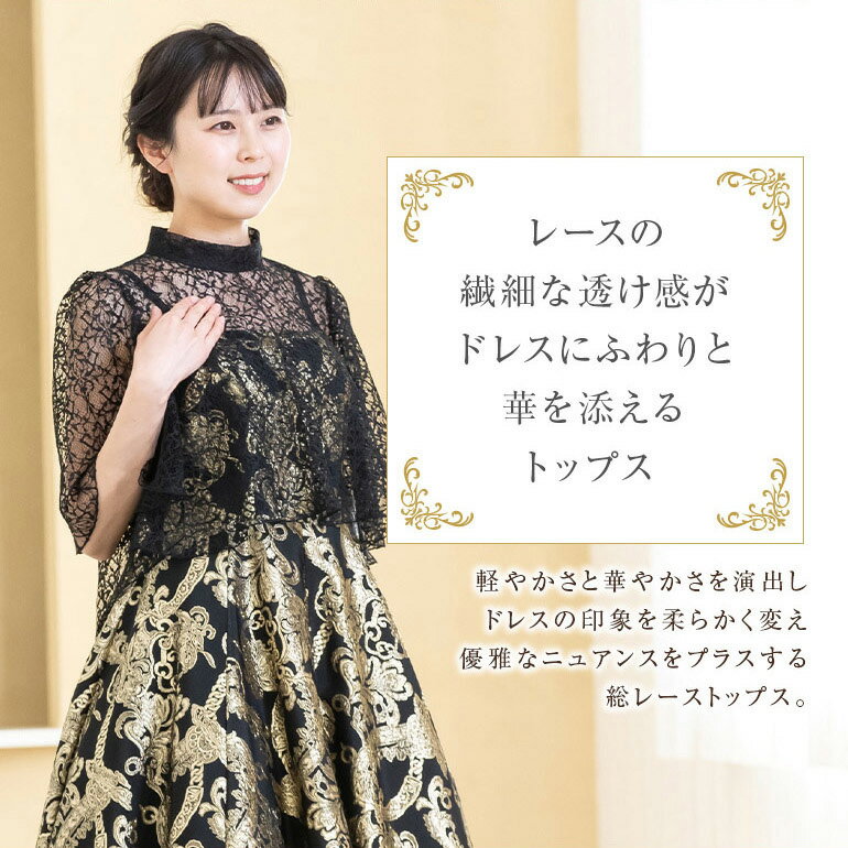 結婚式 フォーマル レース トップス 母親 大きいサイズ ブラック 黒 大人 マザーズドレス レディース 小さいサイズ 卒業式 入学式 お呼ばれ セレモニー 礼服 演奏会 着痩せ (836)日本製