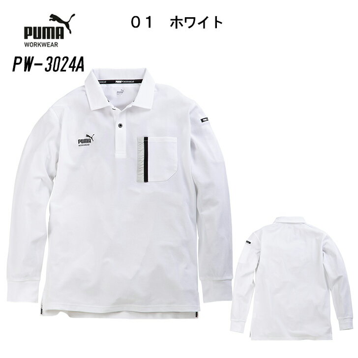 プーマ 長袖 アクティブポロシャツ メンズ PW-3024A ワークウェア 作業着 作業服 ユニホーム PUMA ストレッチ UVカット 吸汗速乾 春 夏 秋 冬 通年