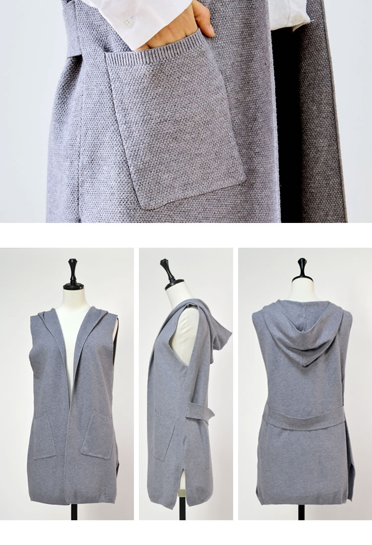 【メール便送料無料】フード付きニットロングベスト◆レディース アウター ジレ ロング丈 無地 羽織 フーテッド フード付き 防寒 カジュアル 大人 春 秋 ニット レイヤード 30代 40代 50代◆
