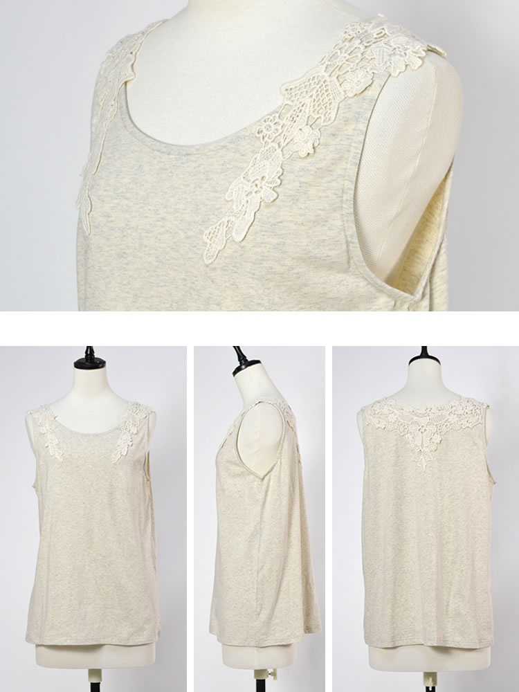 【メール便送料無料】フラワーバックレースタンクトップ◆レディース インナー タンクトップ カットソー 花柄 レース コットン 綿 ノースリーブ レイヤード 無地 大人 カジュアル ナチュラル 春 夏 秋 冬 ストレッチ