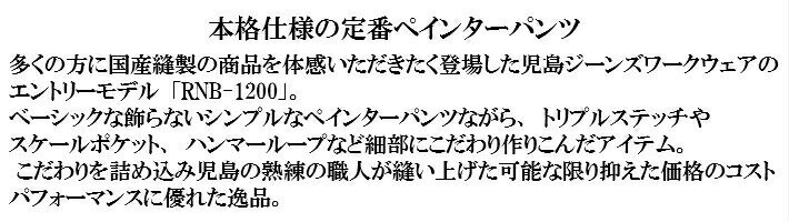 児島ジーンズ ベーシックペインターパンツ 送料無料、代引き手数料無料。15時までのオーダーで即日発送。KOJIMAGENES RNB-1200コンビニ受取可能! ジーンズメンズ 裾上げ チェーンステッチ 国産デニム