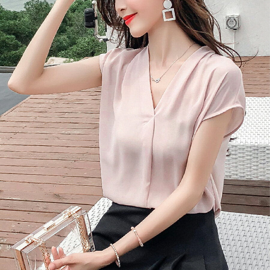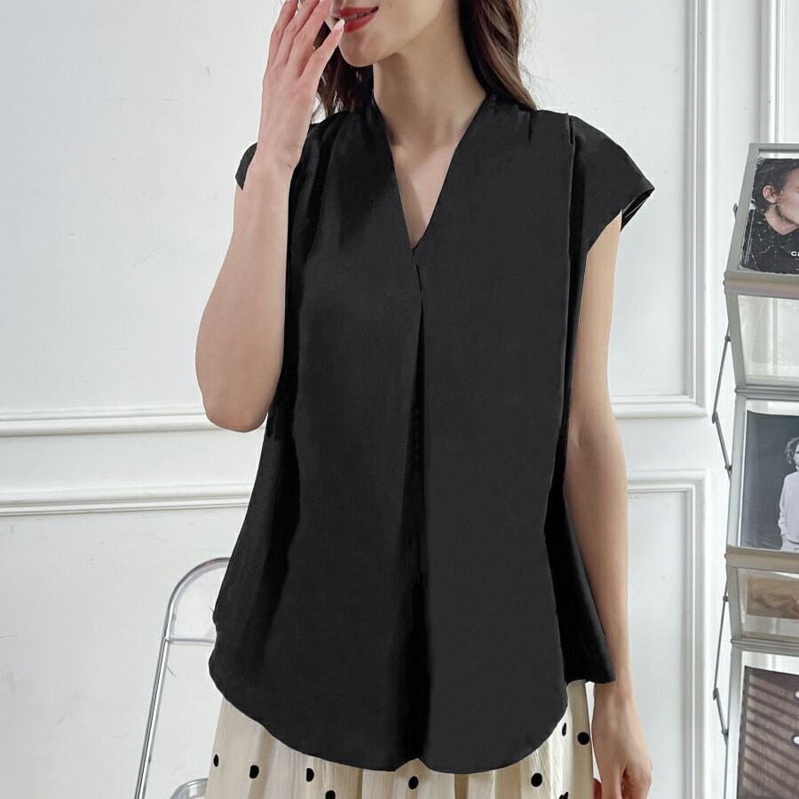 胸元タックフレンチスリーブブラウス 美フォルム ゆるシャツ 通勤 オフィス 無地 女子会 おしゃれ 着回し 春夏 レディース 送料無料 SLENDER スレンダ b1017