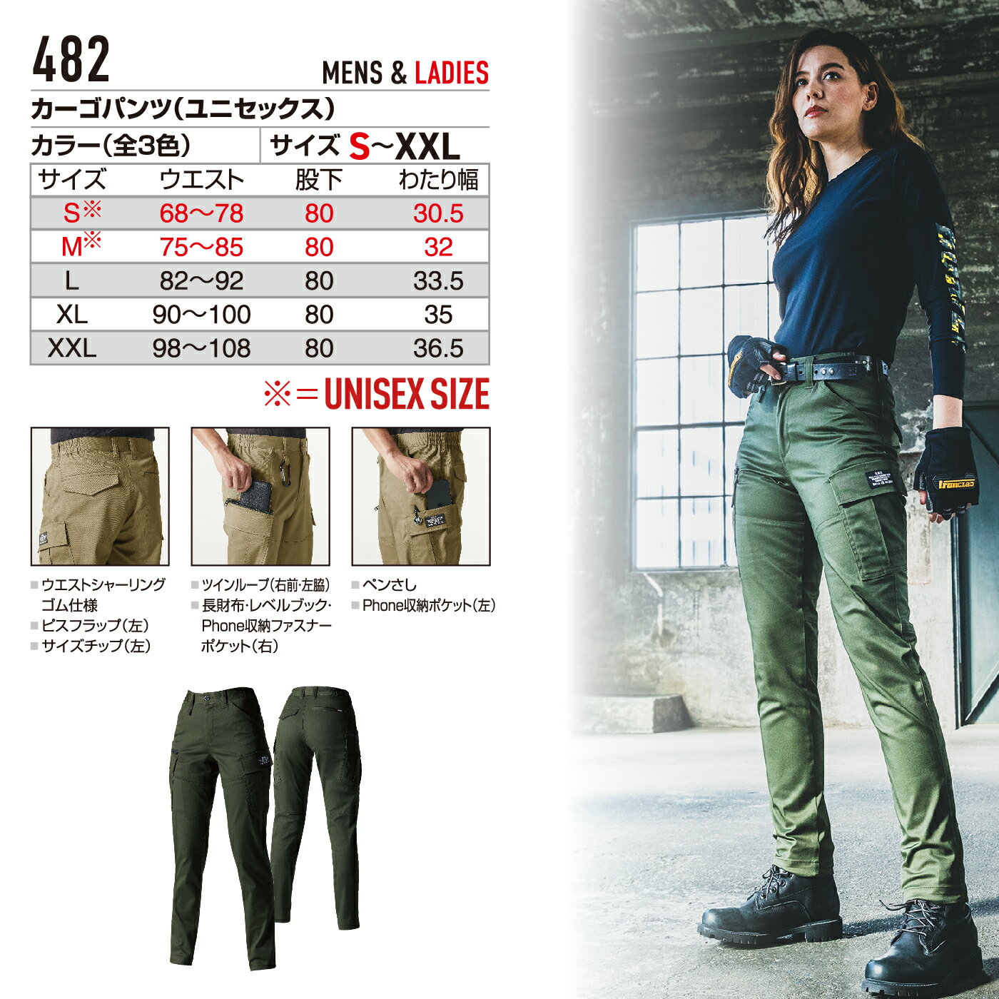 バートル 2024年 新作 482 カーゴパンツ ストレッチ 安い 春夏 ユニセックス メンズ レディース BURTLE