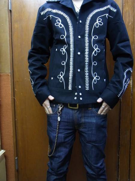 ★定番人気★ メンズ ギャバジンジャケット ヴィンテージ 「Rockmount(ロックマウント)」 50年代モデル ロカビリー ロック メキシカン 刺繍 スマイルポケット 【ブラック】 黒 アウター ウエスタン カントリー バイカー ライダー 衣装 音楽 上野 アメ横 送料無料