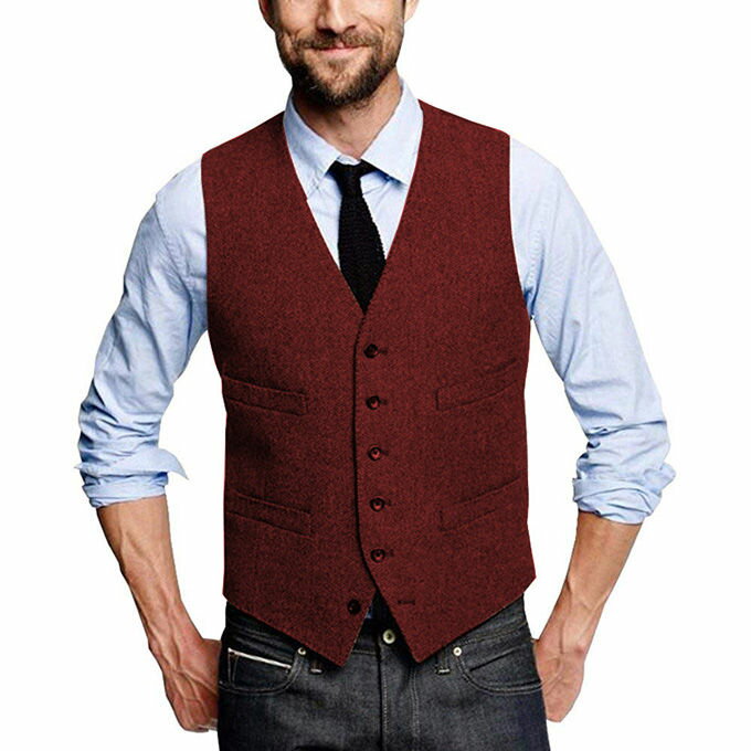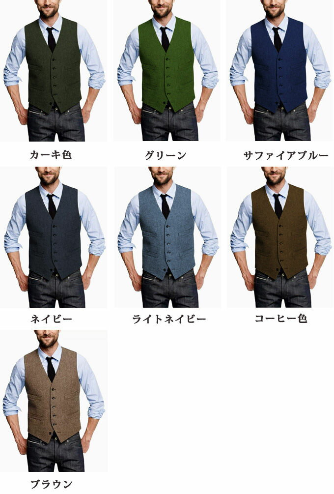 ツィードベスト 細身 フォーマル ジレ スーツベスト メンズ ウール混 ヘリンボーン ベスト ウールツィード スリム 大きいサイズ トップス Vネック ジレベスト ビジネス 紳士服 卒業式 結婚式 男性用 カジュアル 前後同じ素材 春 秋 冬 全13色 送料無料