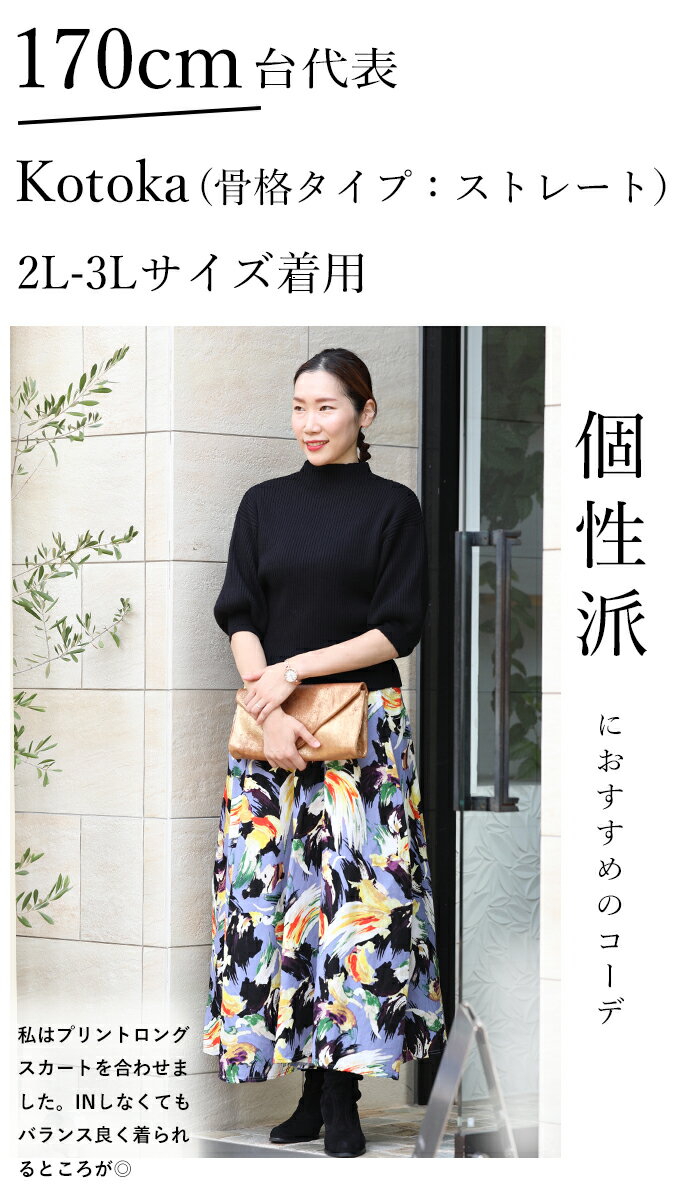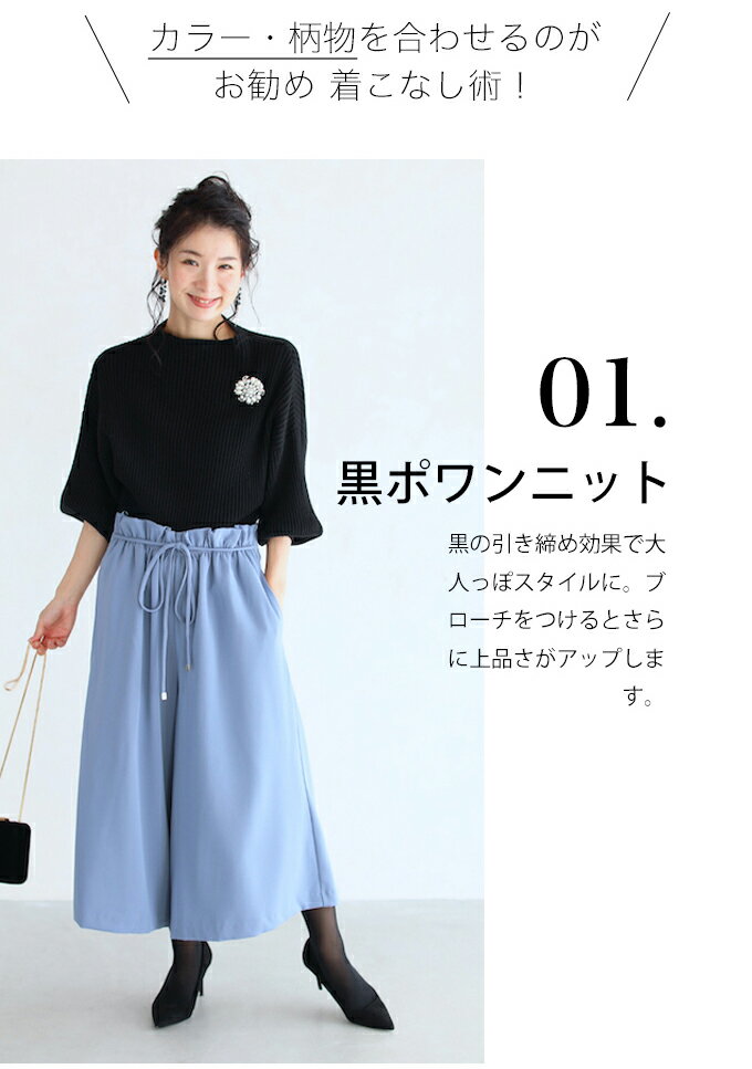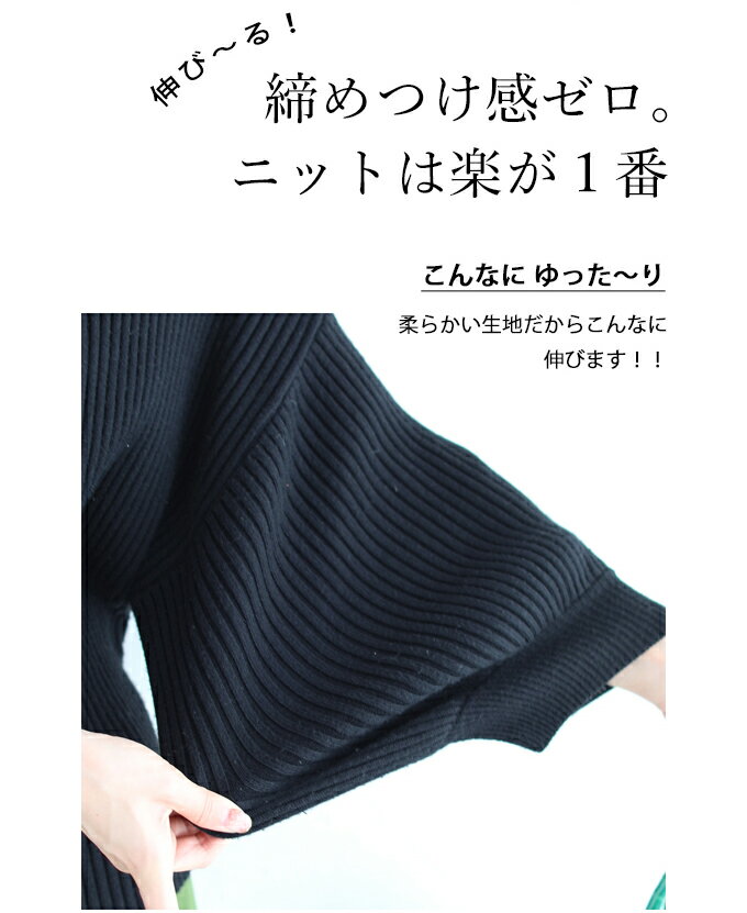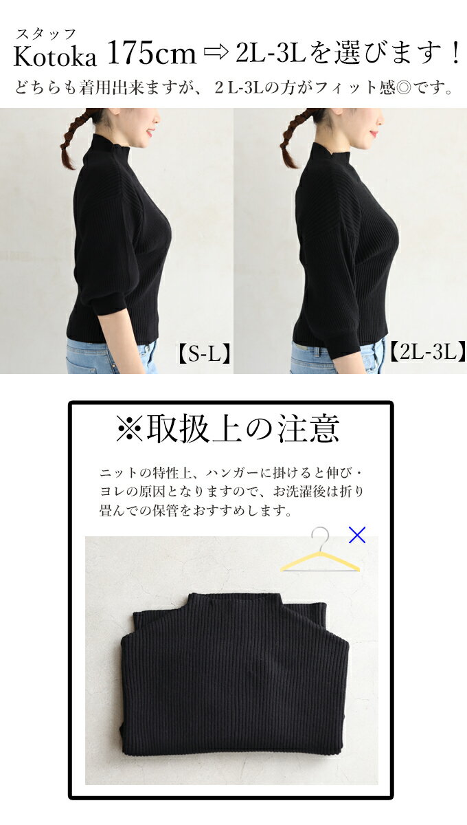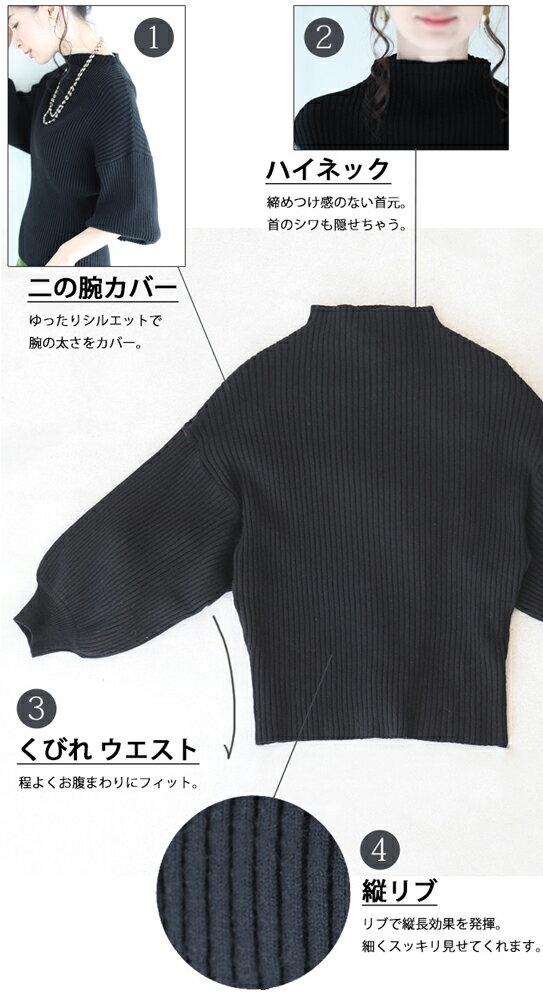 【再入荷♪9/15 12時&20時】(ブラック)(S~L/2L~3L対応)袖ポワンとオフネックのニットトップス/ポワン袖