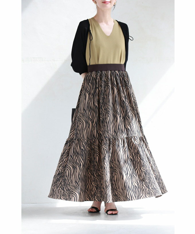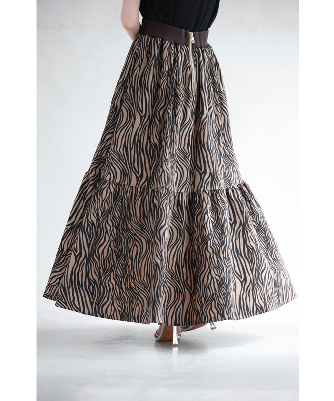 (S~3L対応)揺らめくアニマル柄風アートのロングスカート