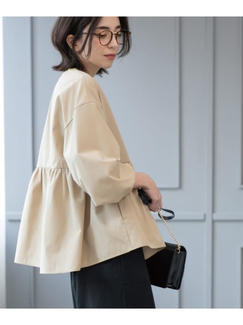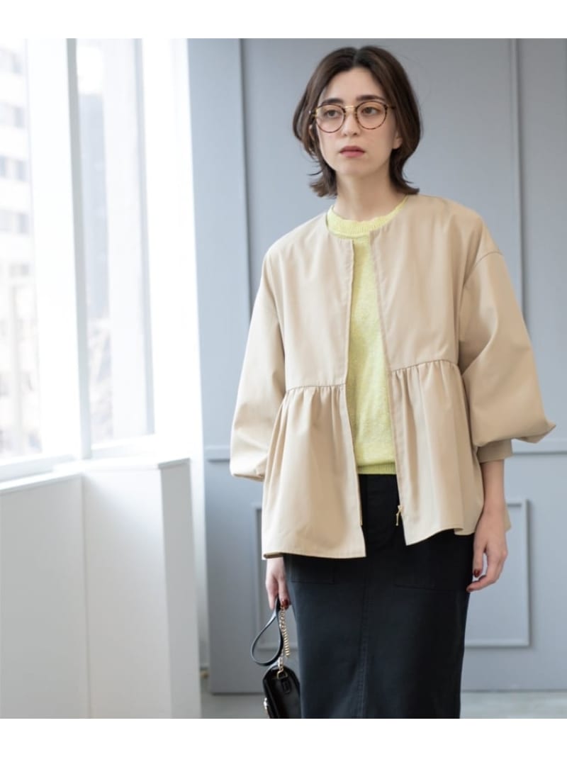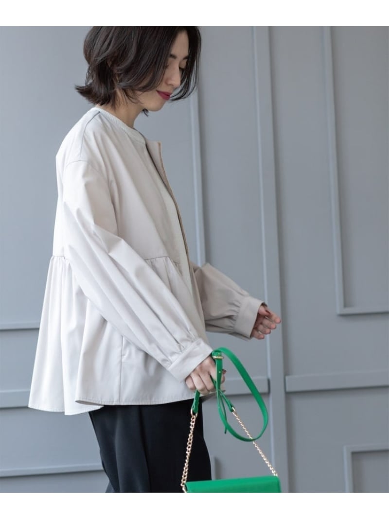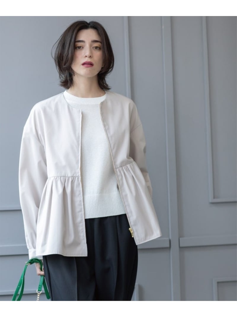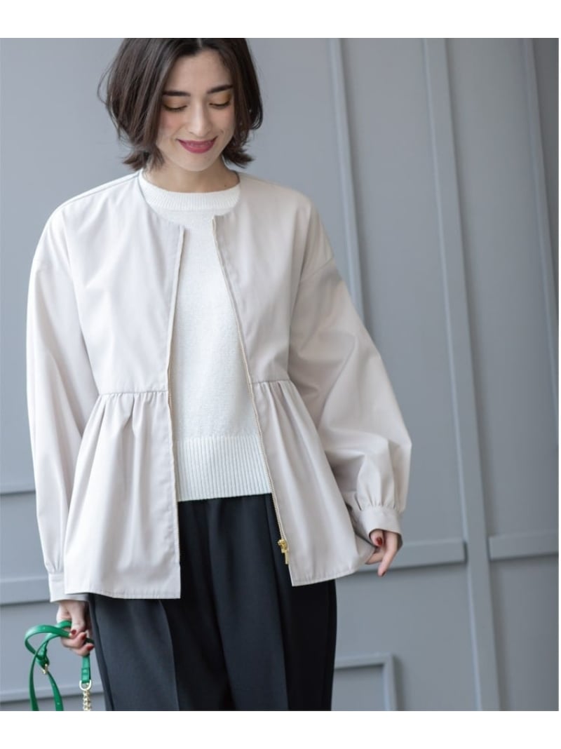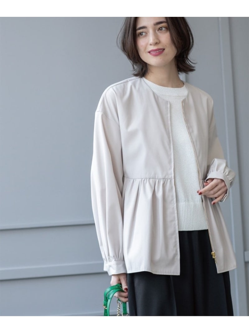 撥水ノーカラーペプラムブルゾン【洗濯機洗い可/花粉対応】 OPAQUE.CLIP オペークドットクリップ ジャケット・アウター ノーカラージャケット ベージュ ブラック【送料無料】[Rakuten Fashion]