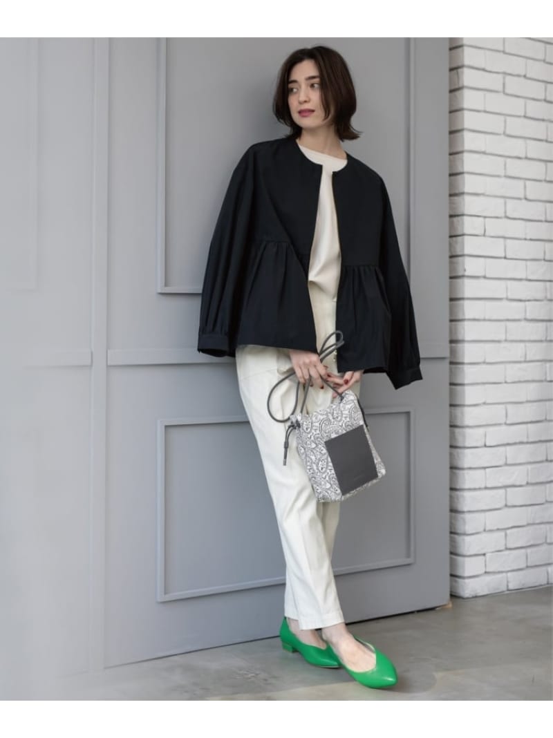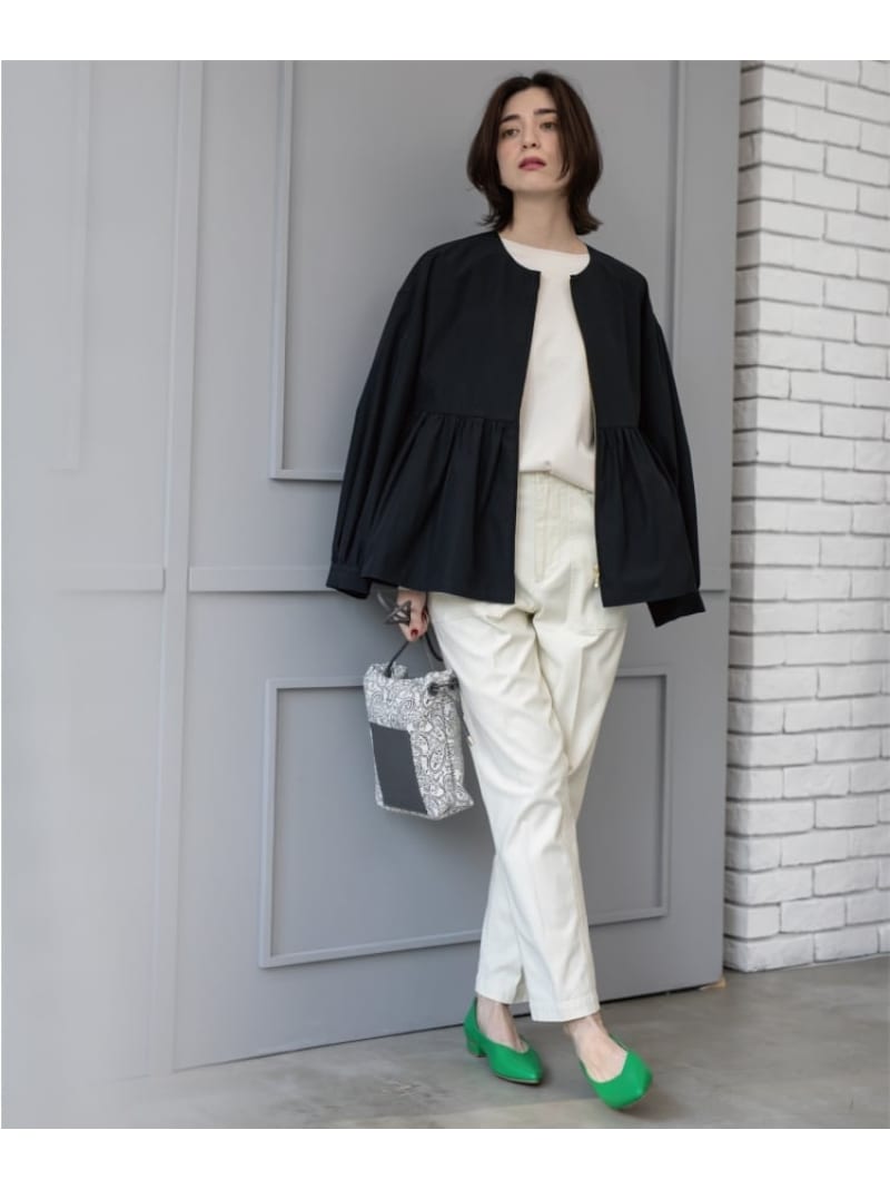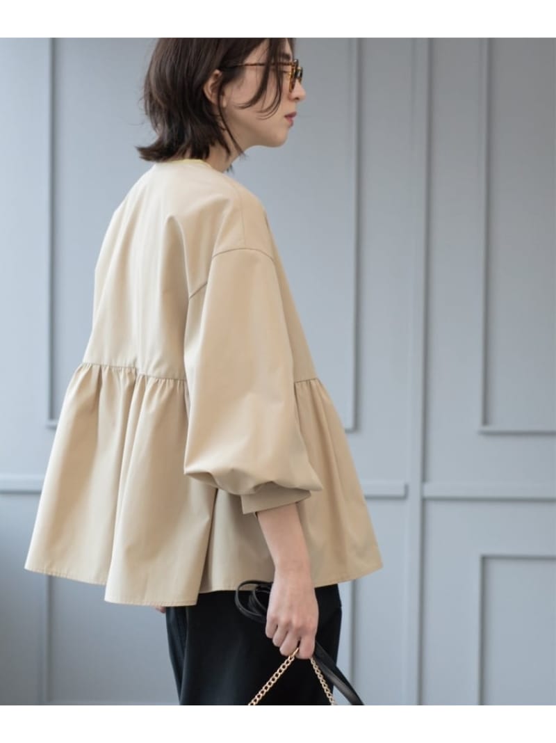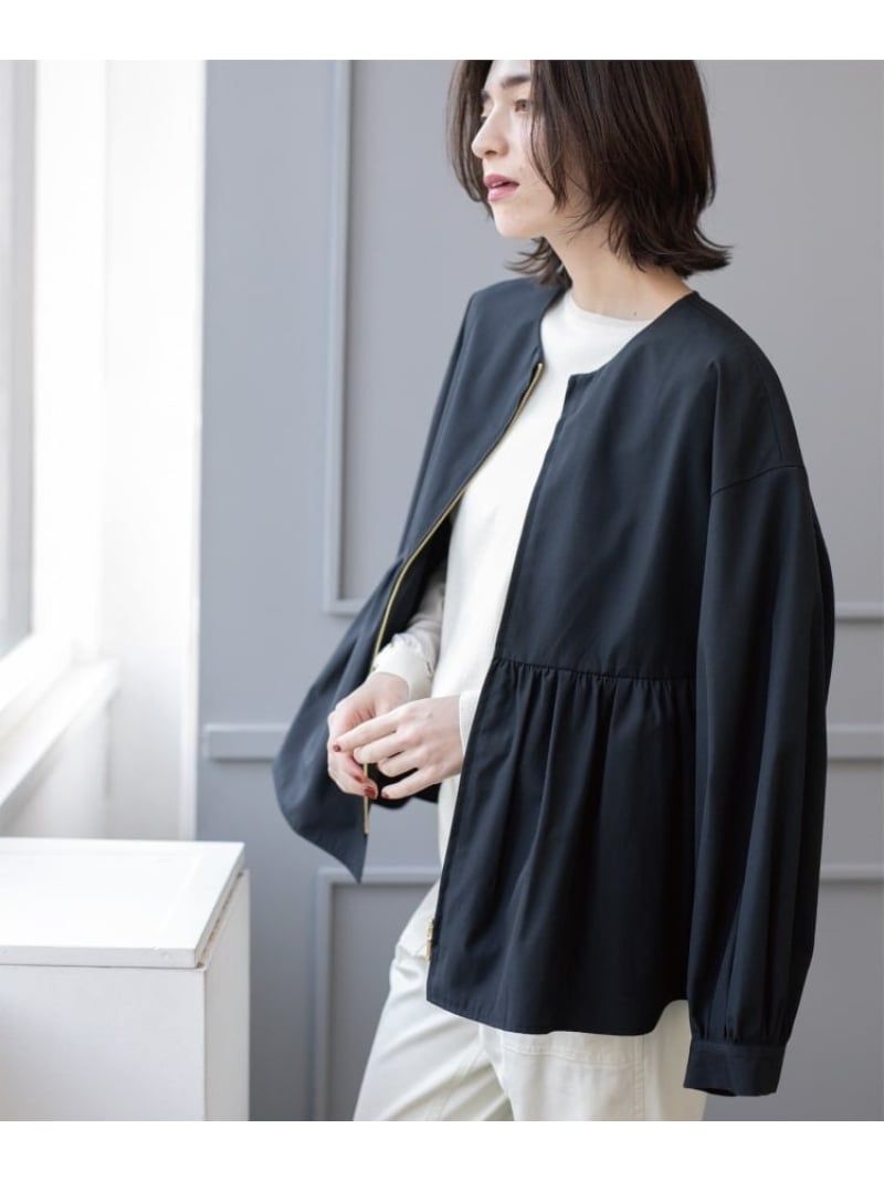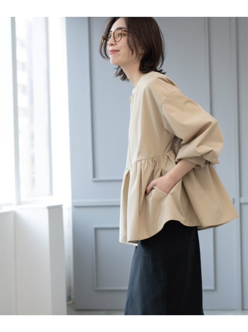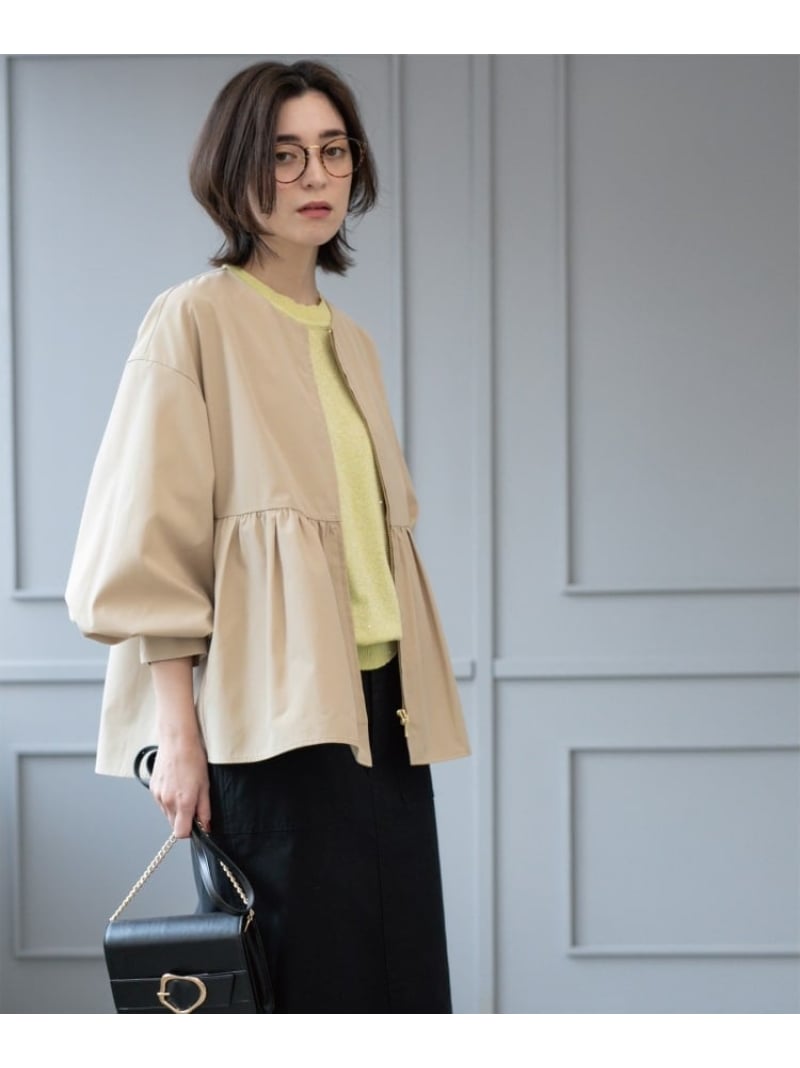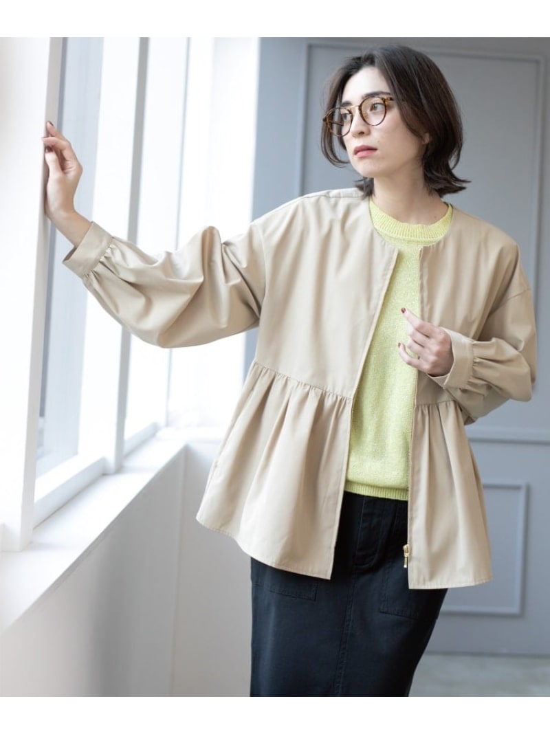 撥水ノーカラーペプラムブルゾン【洗濯機洗い可/花粉対応】 OPAQUE.CLIP オペークドットクリップ ジャケット・アウター ノーカラージャケット ベージュ ブラック【送料無料】[Rakuten Fashion]