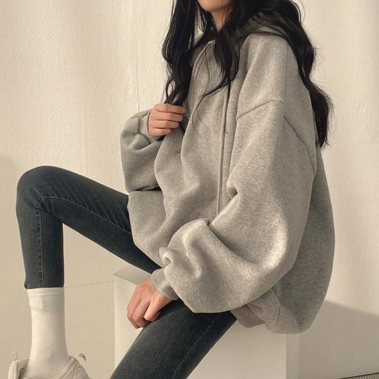 パーカー レディース ハーフジップ 裏起毛パーカー 長袖 トップス ボリュームスリーブ スウェット フード付き 無地 裏起毛 防寒 あったか 韓国ファッション ゆったり 体型カバー オーバーサイズ 薄手 プルオーバー 秋冬 春 コットン 通学 通勤 送料無料