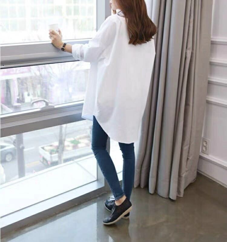 チュニック丈 長袖 レディース ブラウス シャツワンピース シャツ ブラウス 秋 トップス 大きいサイズ 対応 レディース 白シャツ ベーシック 女子 体型カバー ロングシャツ 大人 おしゃれ キレイめ 夏 アシンメトリー 女子 定番 仕事 オフィス 20代 30代 40代 50代 送料無料
