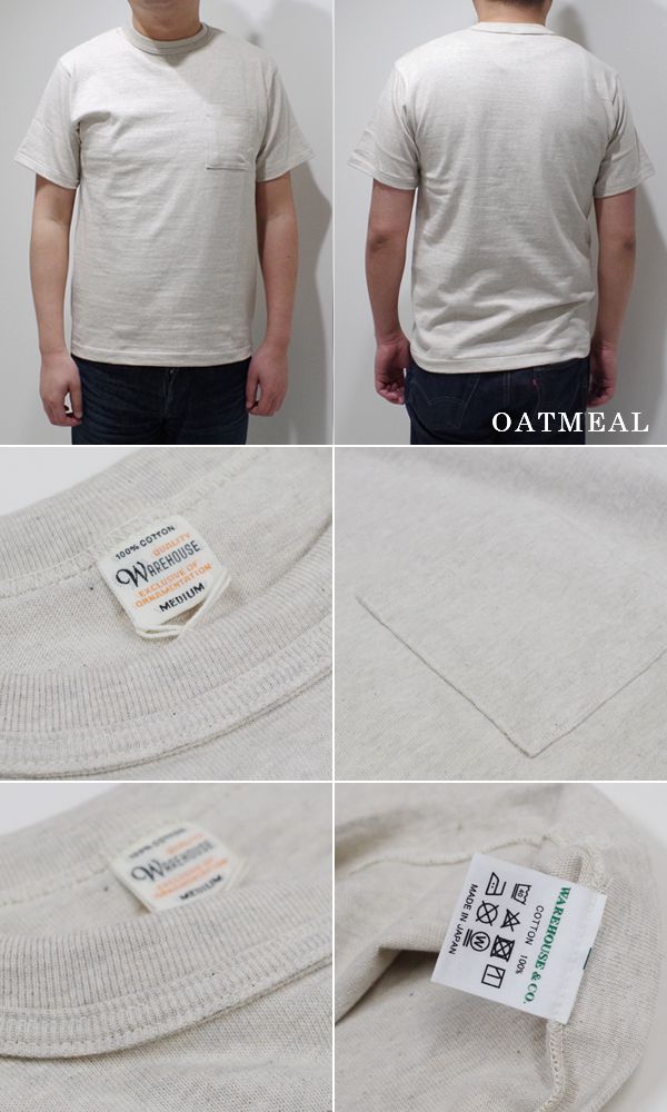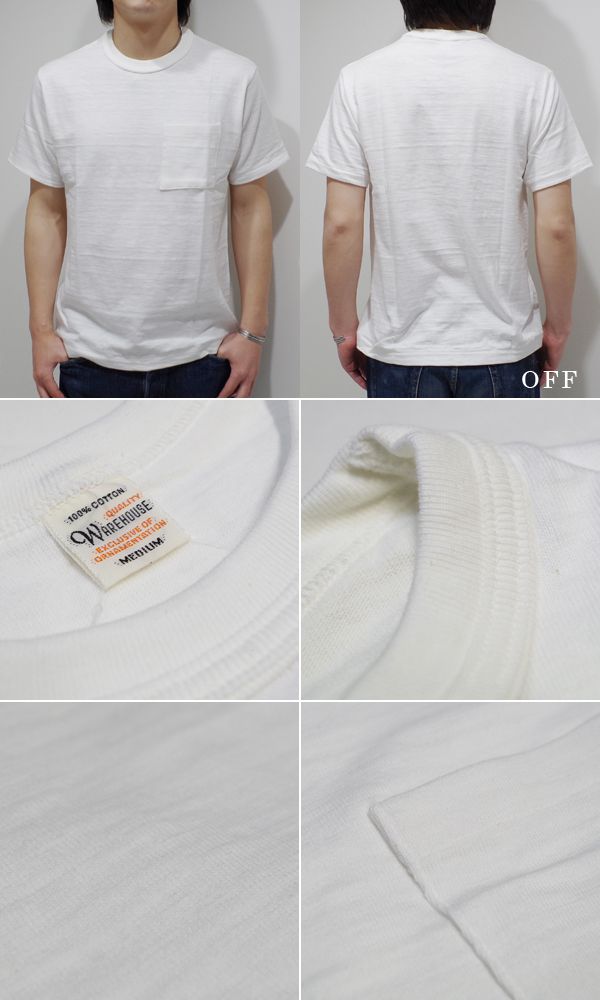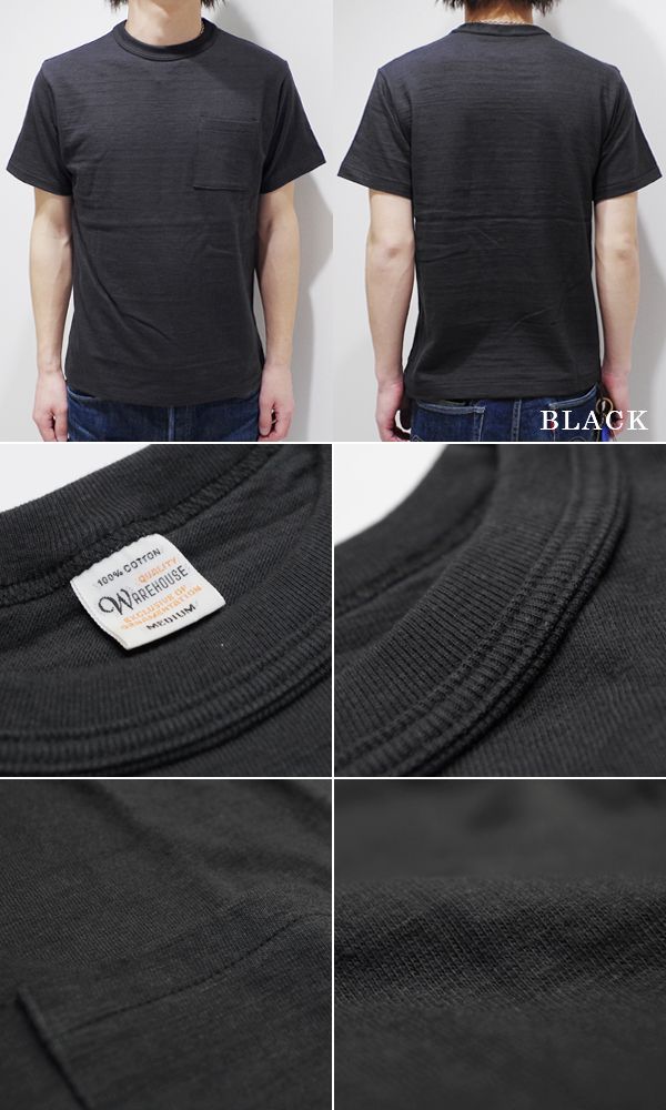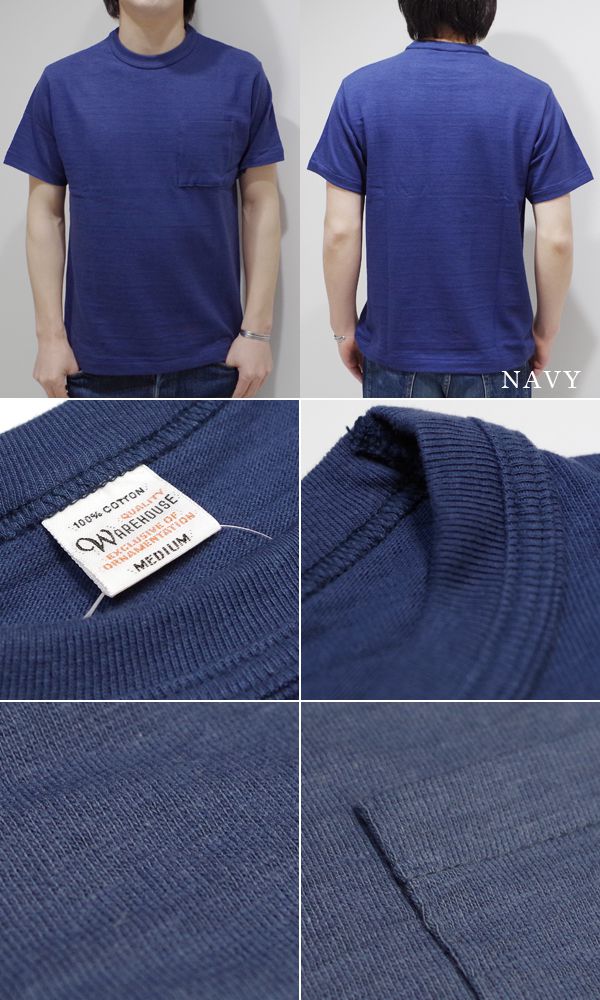 WAREHOUSE ウエアハウス 半袖|無地|粗挽きスラブ糸|シャドーボーダー|POCKET TEE『ポケットTEE』【アメカジ・カレッジ】4601-P