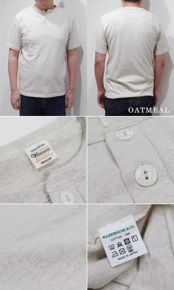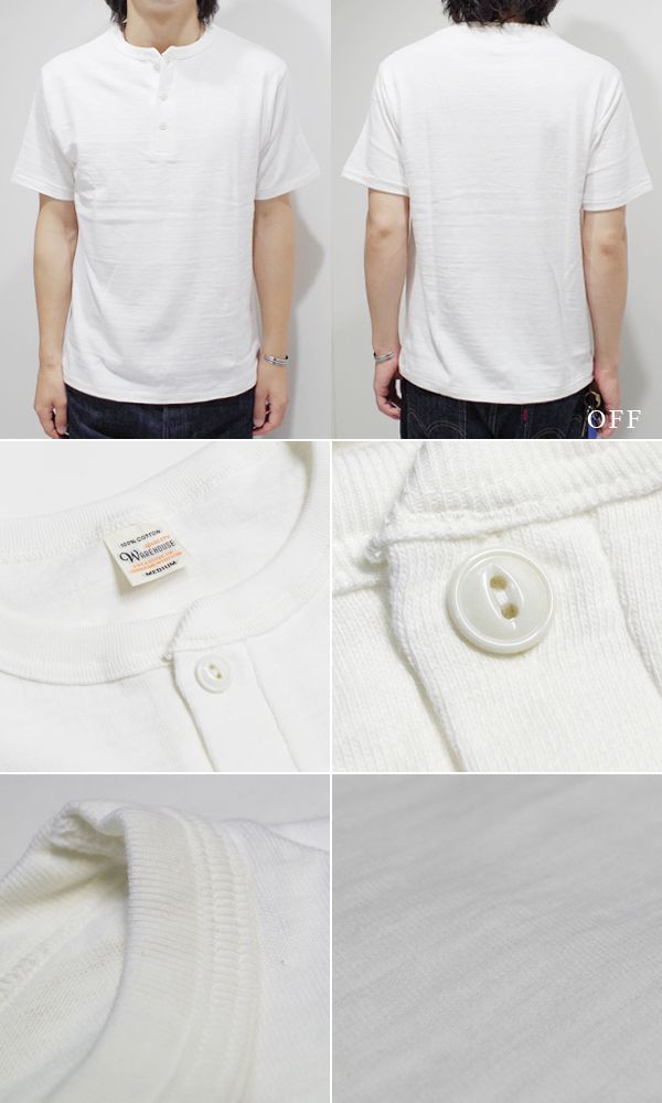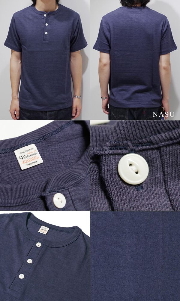 WAREHOUSE ウエアハウス 半袖|無地|粗挽きスラブ糸|シャドーボーダー|HENLEY NECK TEE『ヘンリーTEE』【アメカジ・カレッジ】4601-H