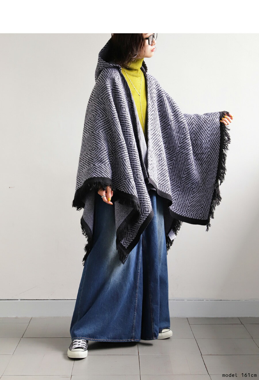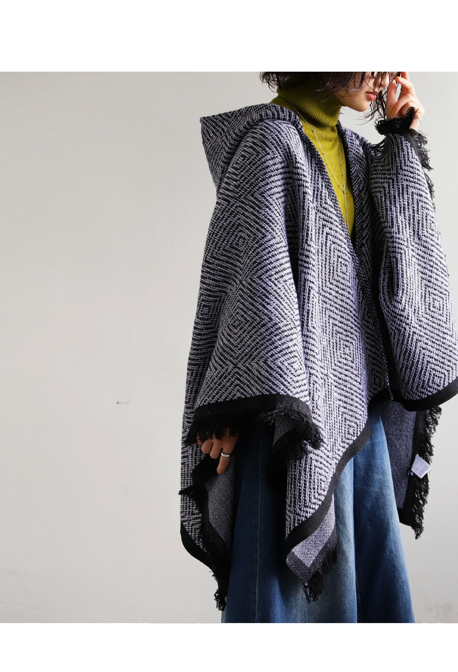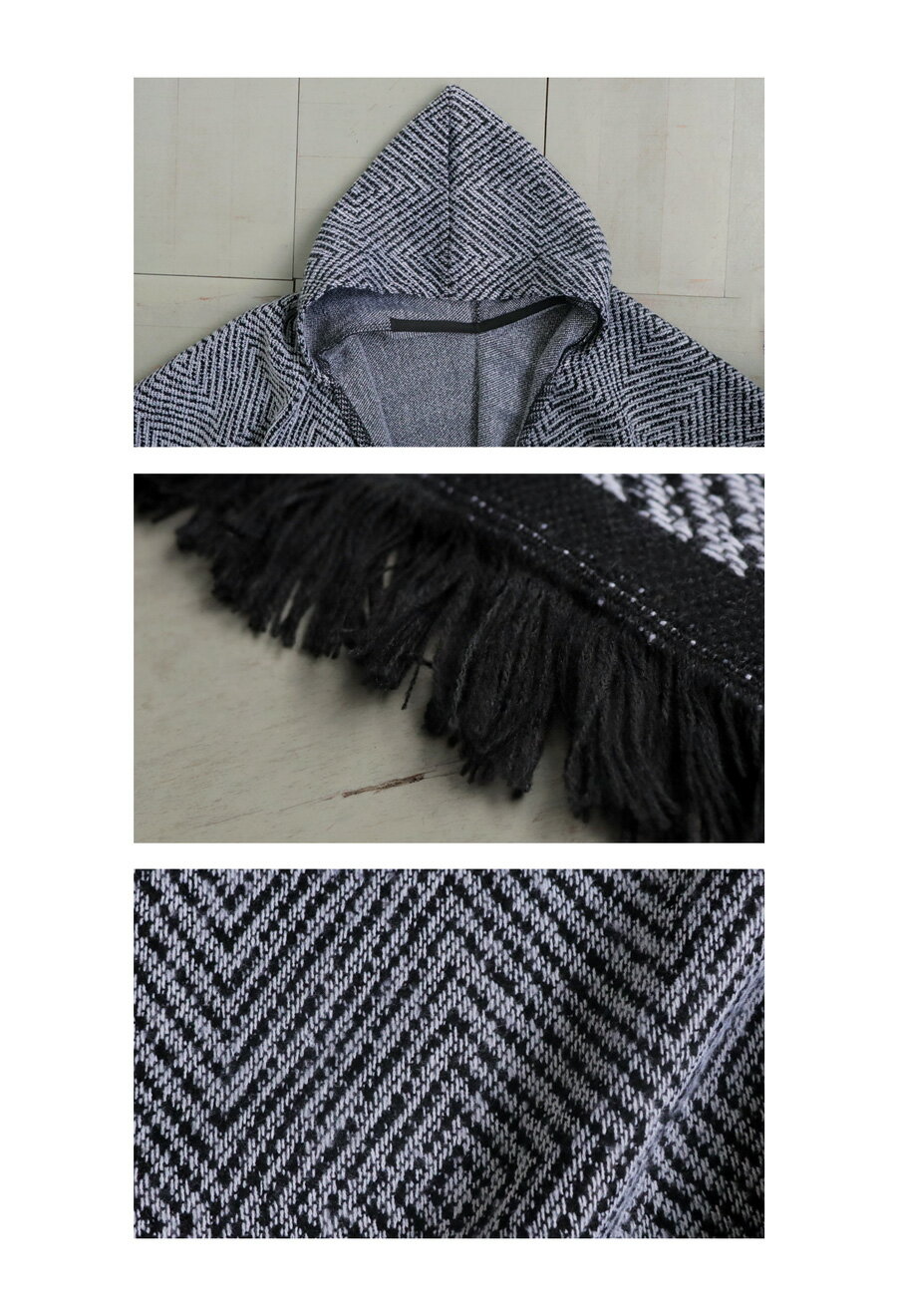 カーディガン カーデ ポンチョ フード付き ストール ショール 大判 大きめ ブランケット ひざ掛け 羽織り 総柄 柄 フリンジ 変形 実用的 お出かけ 防寒対策 秋冬 カジュアル レトロ 大人 レディース おしゃれ 誕生日 プレゼント AminaCollection