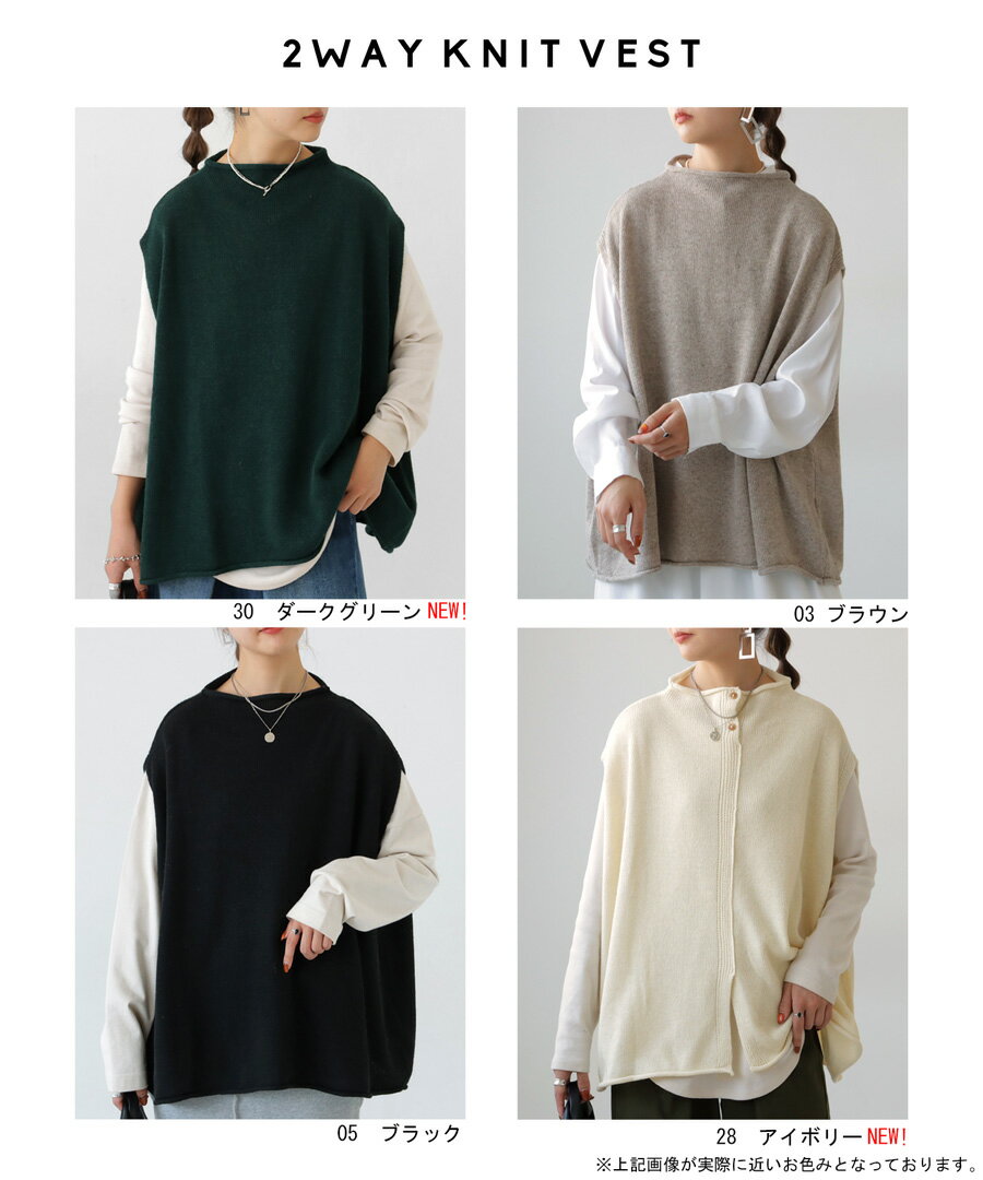 【大人気商品!再入荷!!】 ニット ベスト ニットベスト トップス 2way あったか 重ね着 ワイド ウール混 ニュアンスカラー 無地 オールシーズン 秋冬 ゆったり ナチュラル カジュアル 大人 レディース おしゃれ 誕生日 プレゼント AUBE